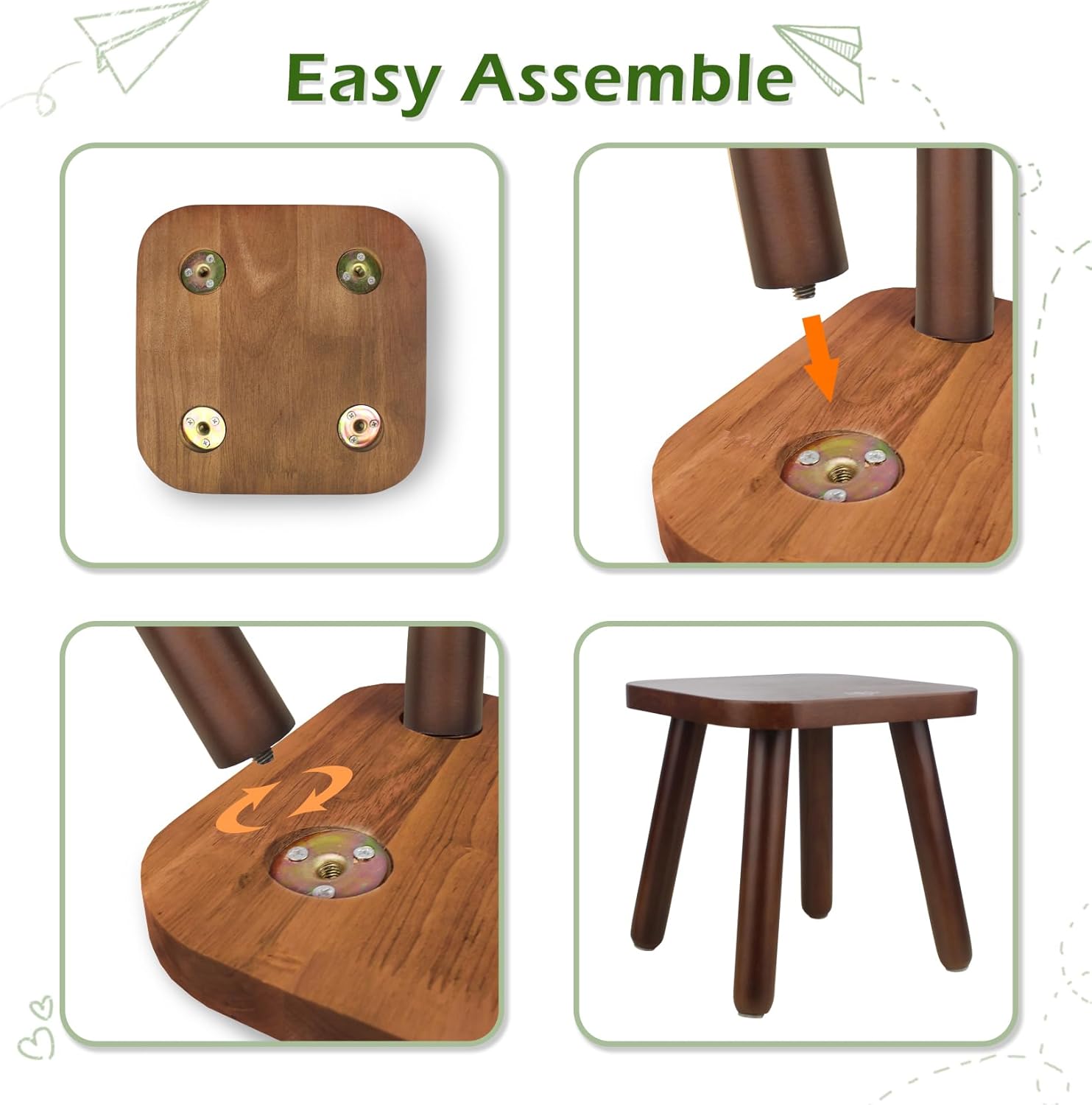 - STRONG DURABLE,EASY ASSEMBLE: The small wooden stool can hold up to 300 lbs with the thickness of 2 cm wood, strong and stable. Four-legged assembled child stool, just tighten and use, comes with anti-slip pads ensure quiet movement and protect floors