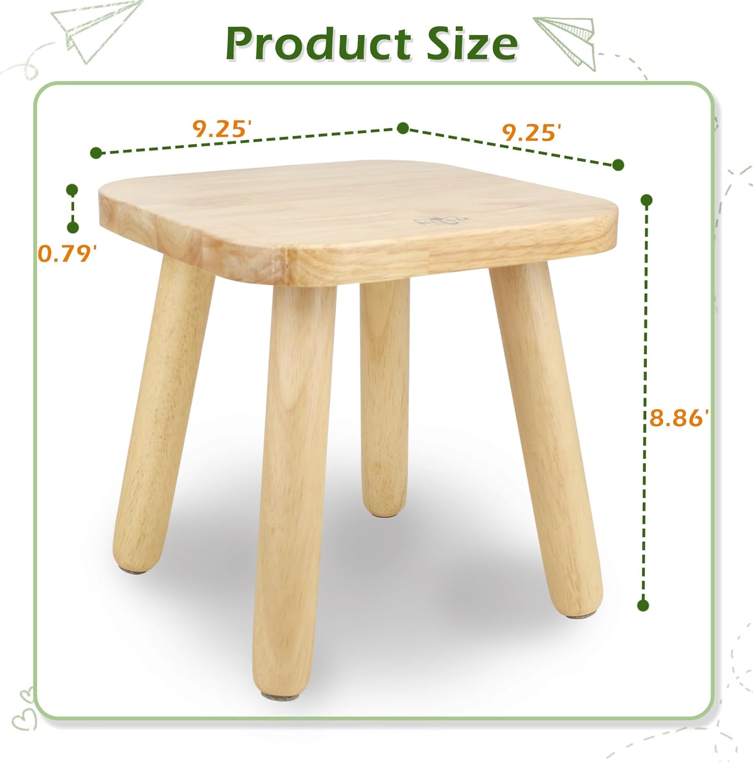 - NATURAL SOLID WOOD,SAFE DESIGN: Made of high quality natural rubber wood, healthy and environmental friendly. All the corners of the small stool are designed to be rounded to prevent bumping, smooth surface without abrasion, it ideal sitting stool choice for children and adults