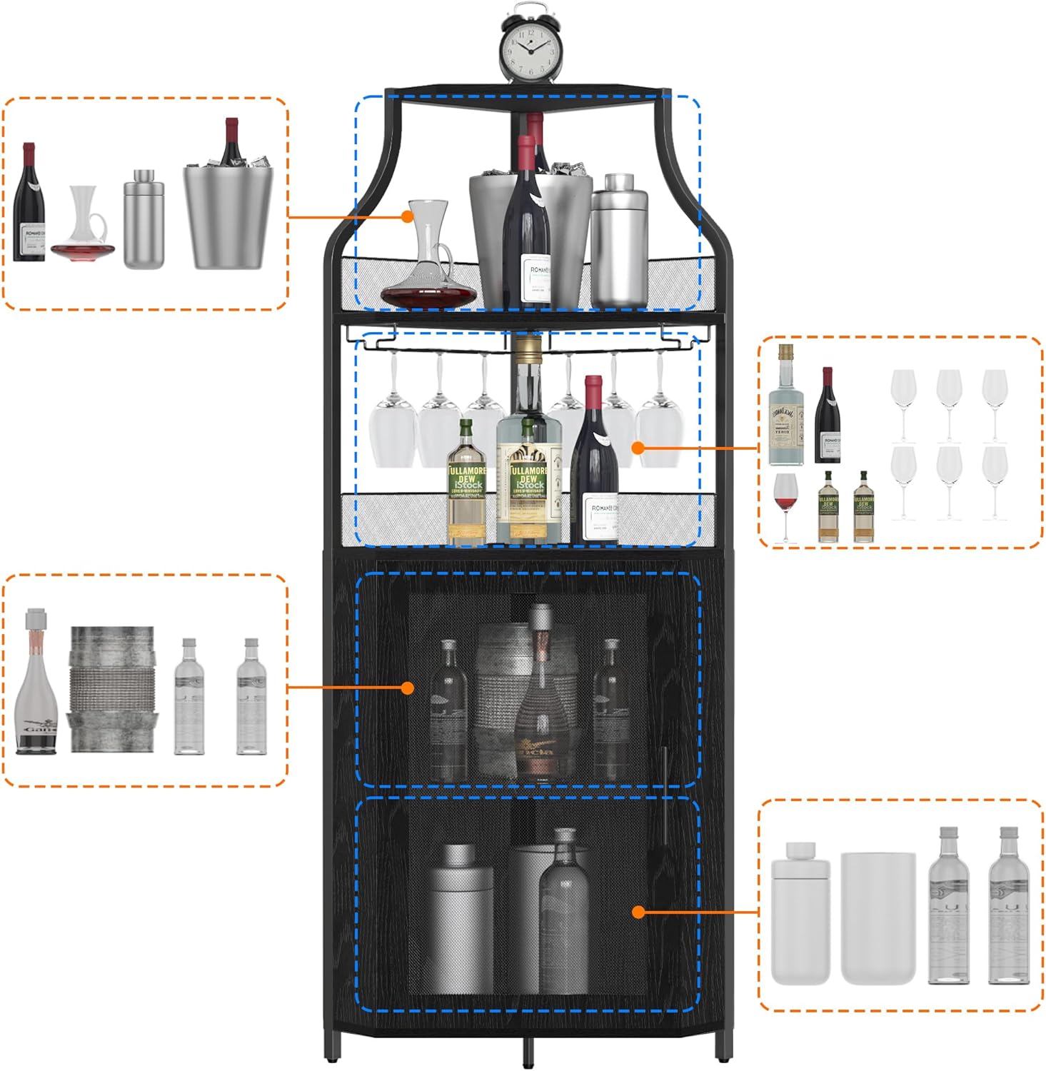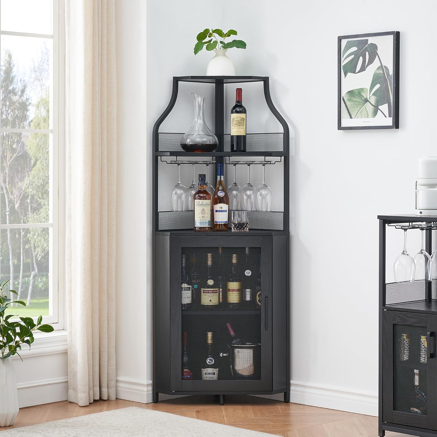 - Ample Storage Space: Featuring an innovative layout, this corner wine cabinet provides abundant storage capacity, allowing you to neatly organize a wide variety of wine-related items. Its thoughtful design enhances your living space while offering practical solutions for wine storage.