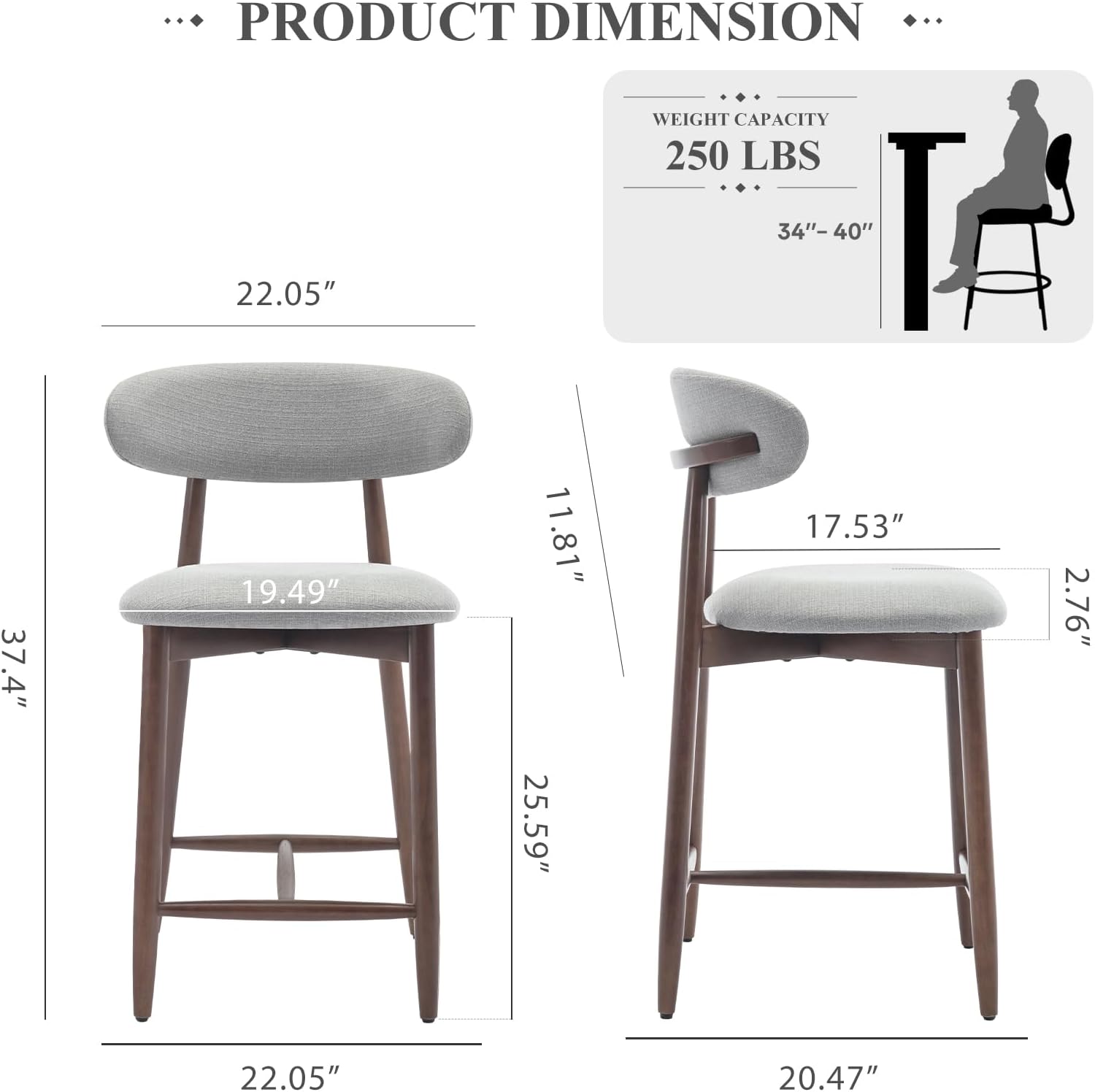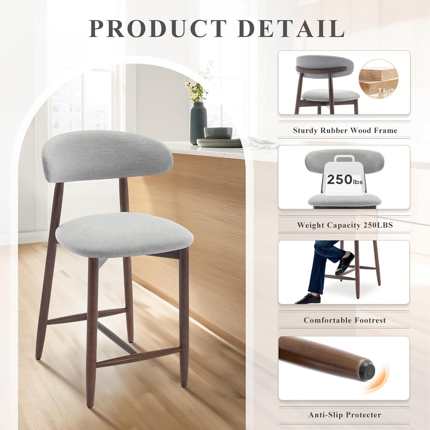 - 【Mid Century Modern Bar Stools】Mid century modern bar stools with wood legs, the great combination of style, comfort, and sturdy. Crafted from premium quality wood, count height bar stools with back are built to last. With a height of 25 inches, upholstered barstools for kitchen island or dining room or bar provide comfortable seating for any people, making them versatile for any space.
