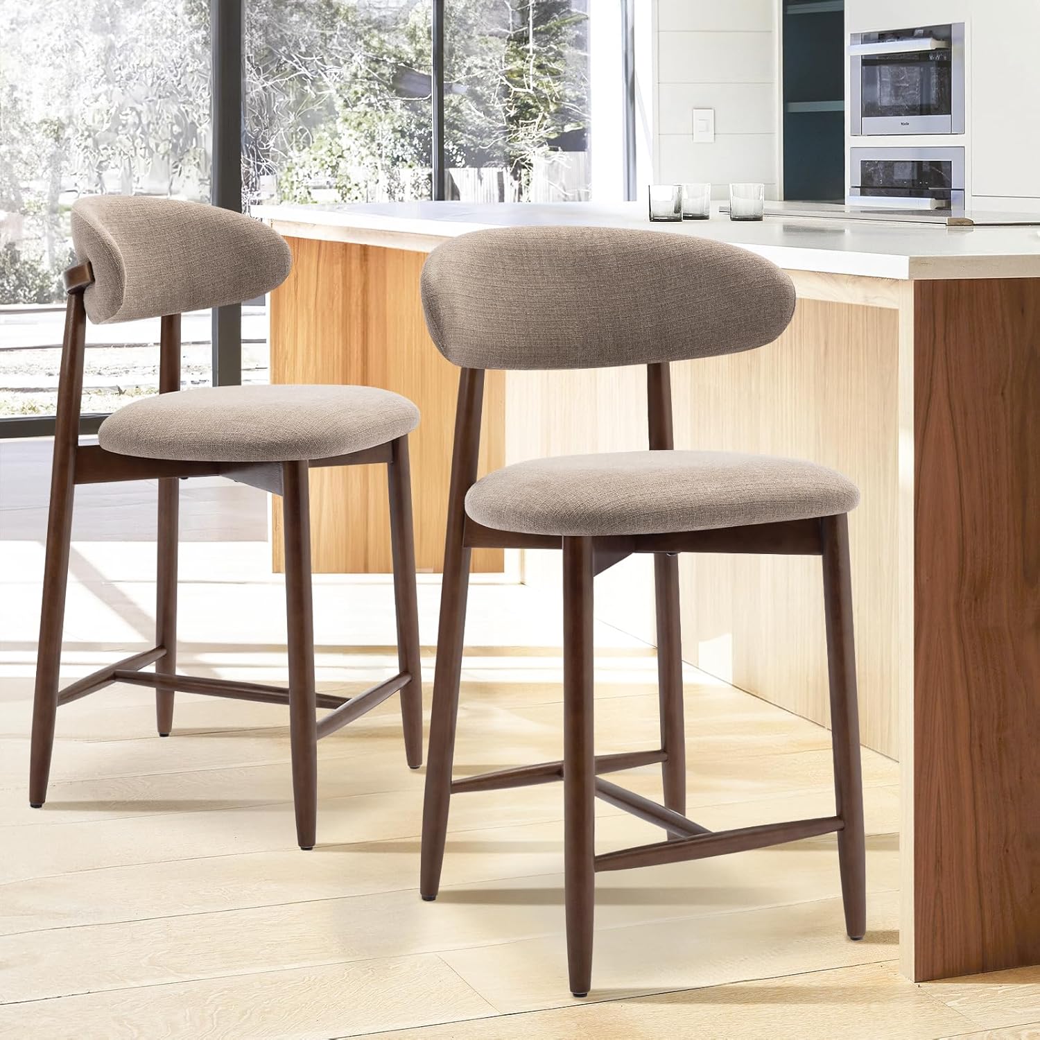 - 【Mid Century Modern Bar Stools】Mid century modern bar stools with wood legs, the great combination of style, comfort, and sturdy. Crafted from premium quality wood, count height bar stools with back are built to last. With a height of 25 inches, upholstered barstools for kitchen island or dining room or bar provide comfortable seating for any people, making them versatile for any space.