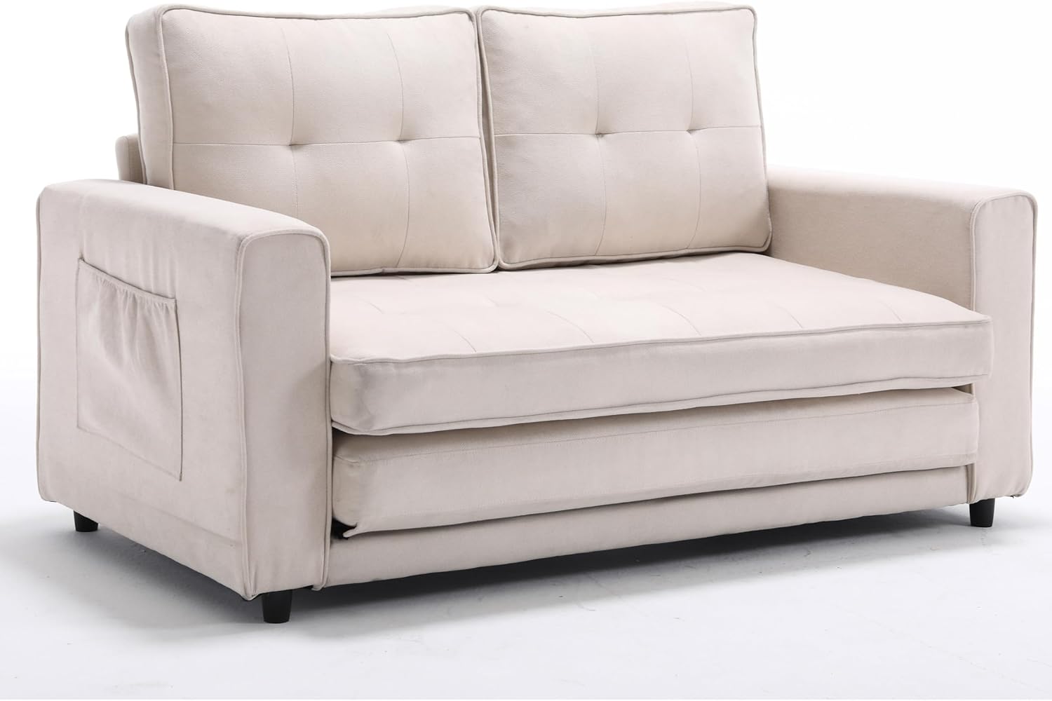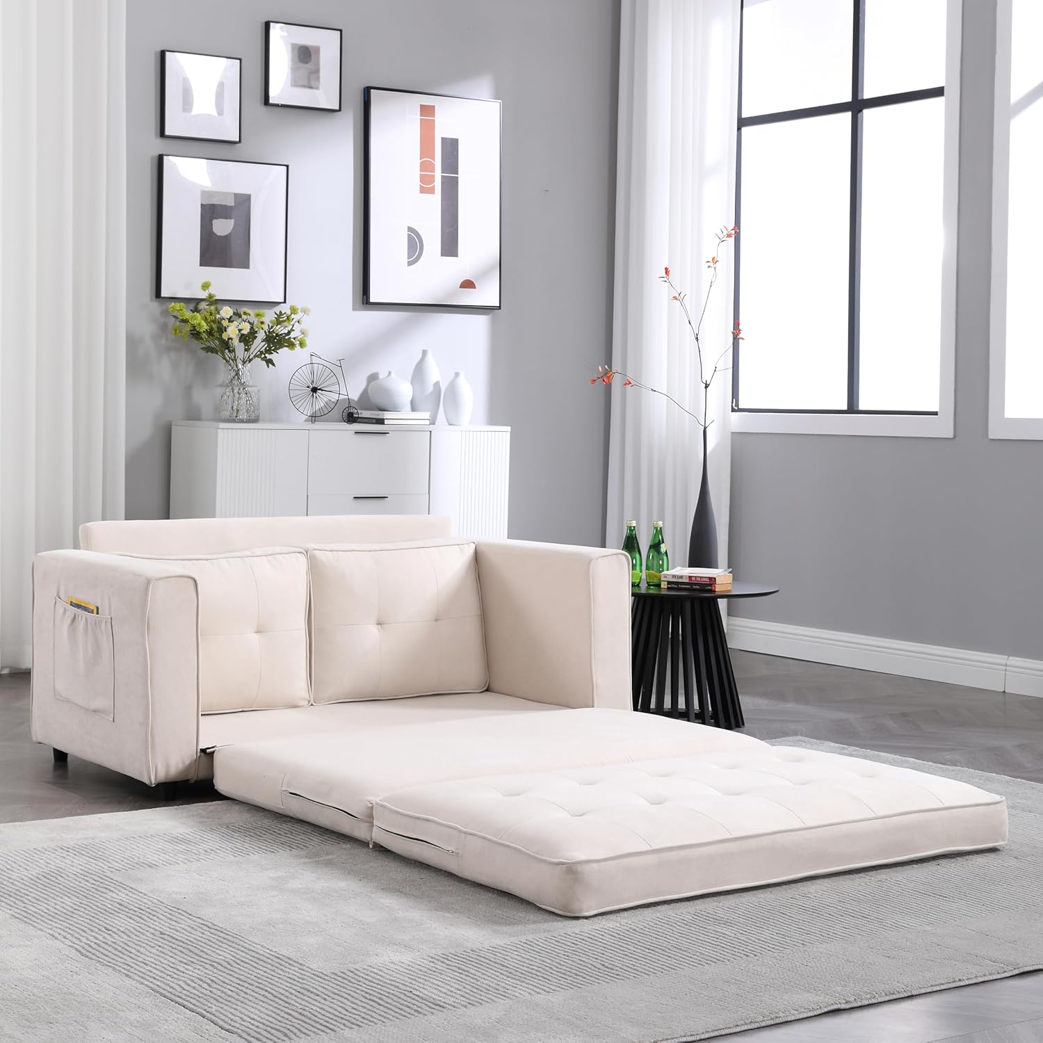 ERYE 3 Fold Tufted Upholstered Futon Sofa Bed Modern Convertible Foldable Floor Loveseat Sofabed with Pull Out Sleeper Couch Daybed W/Side Pockets for Living Room