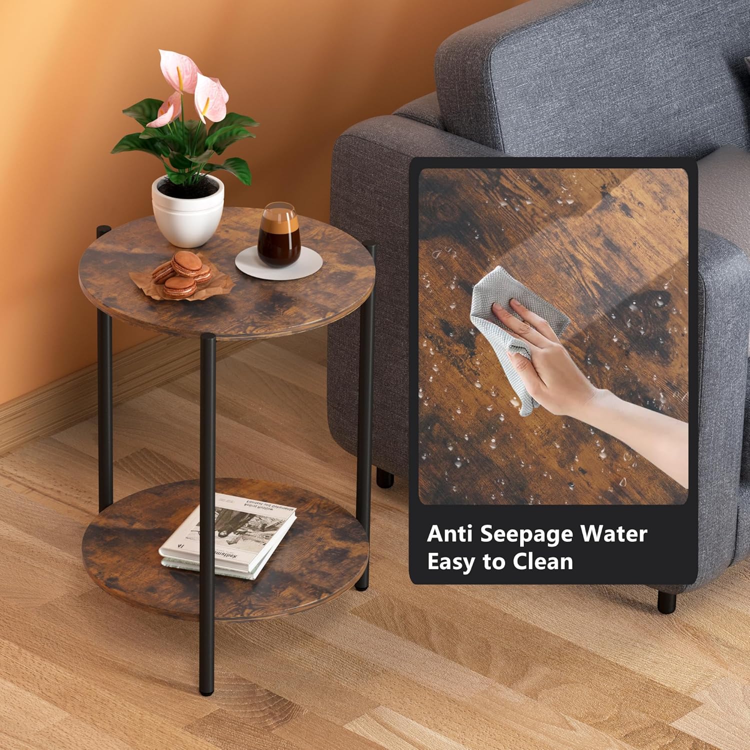 - 【Adjustable & Waterproof】This wooden rustic side table is designed with adjustable foot to ensure stability on uneven floors. Non-slip feet prevent scratches on the floor, and the tabletop is smooth, waterproof and easy to clean
