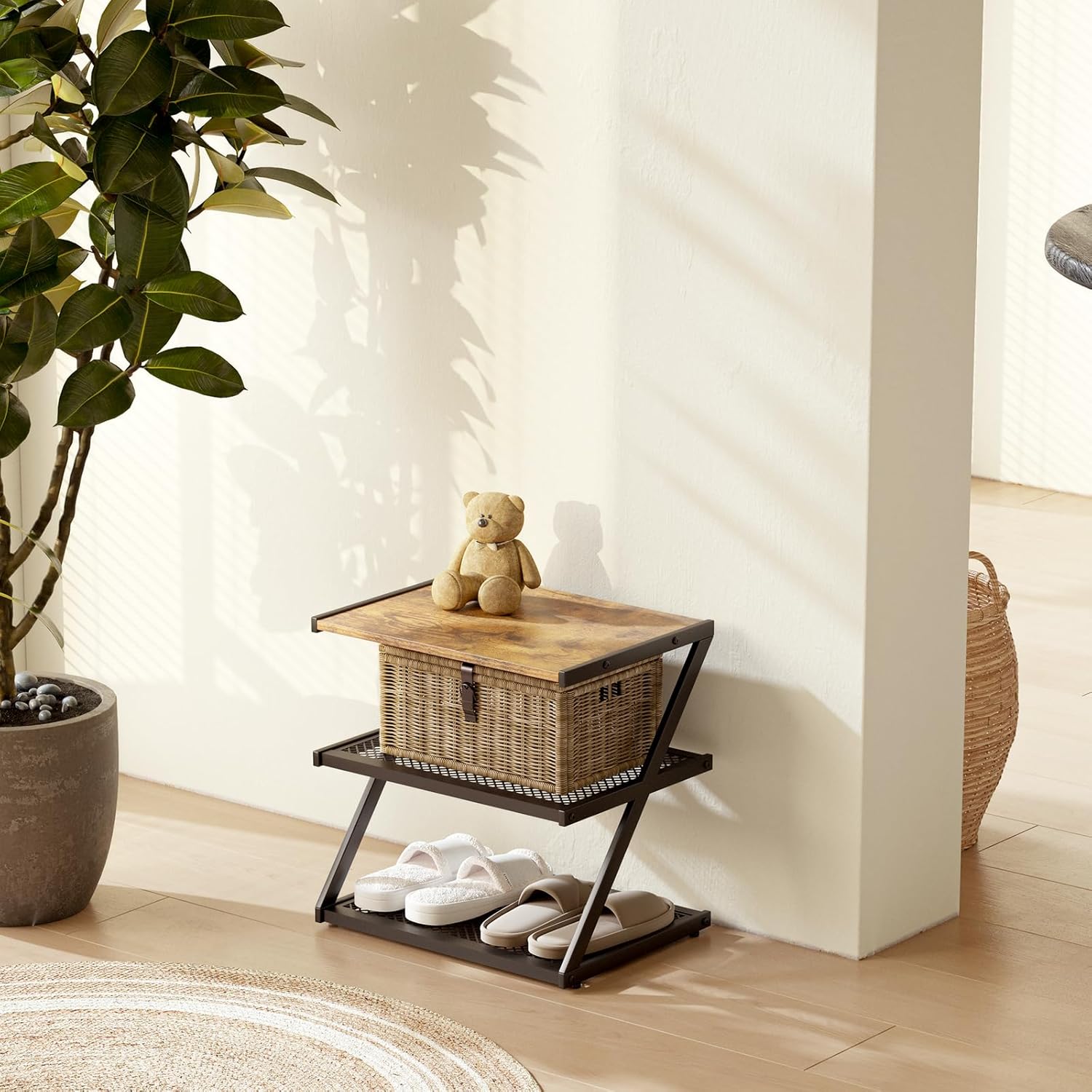 Shoe Rack, Z-Frame Wooden Shoe Shelf with Heavy-Duty Metal Mesh Shelves for Hallway, Living Room, Closet, and Bedroom Organization - Organize Your Shoes in Style (16.54" x 10.24" x 16.14")
