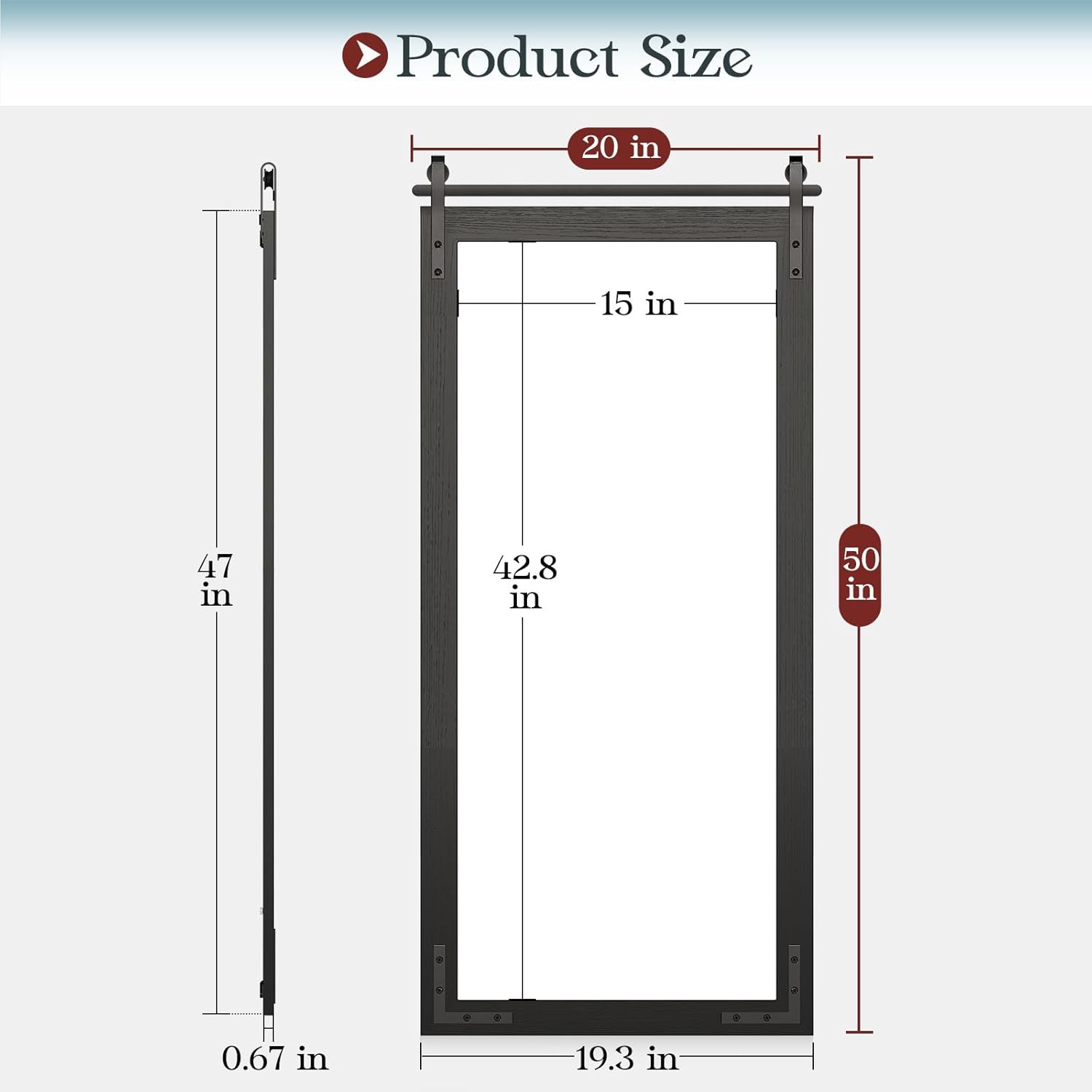 Farmhouse Mirror for Bathroom, 20"x50" Black Rustic Bathroom Mirror with Wood Framed Decorative, Rectangle Barn Door Vanity Mirrors for Wall Entryway, Living Room, Courtyard