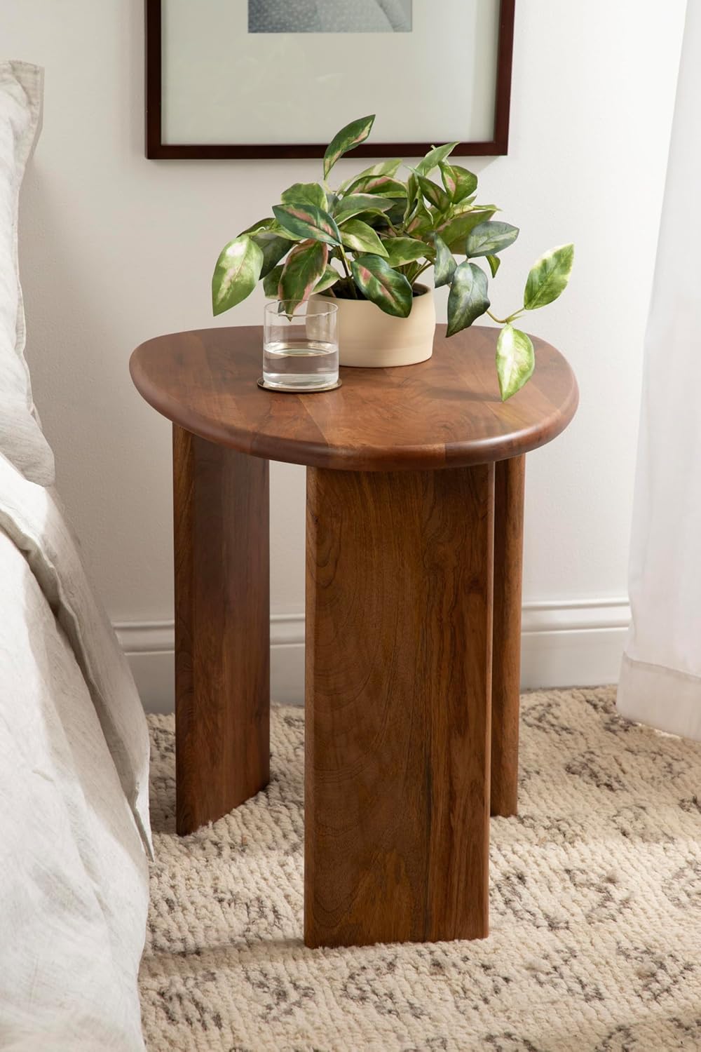 - Irregular Tabletop Shape: The Tortola end table provides your home with space to store accessories, display keepsakes, or serve beverages on coasters as either a living room side table or a bedroom nightstand