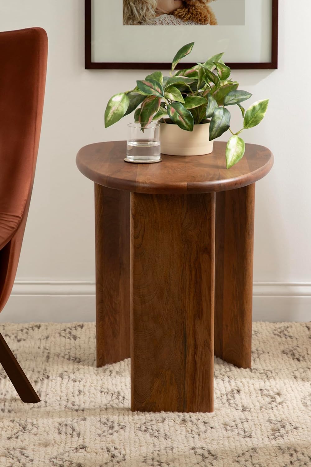 - Gorgeous Woodgrain: Both the tabletop and base of this side table feature natural woodgrain that provide your space with adequate depth and texture