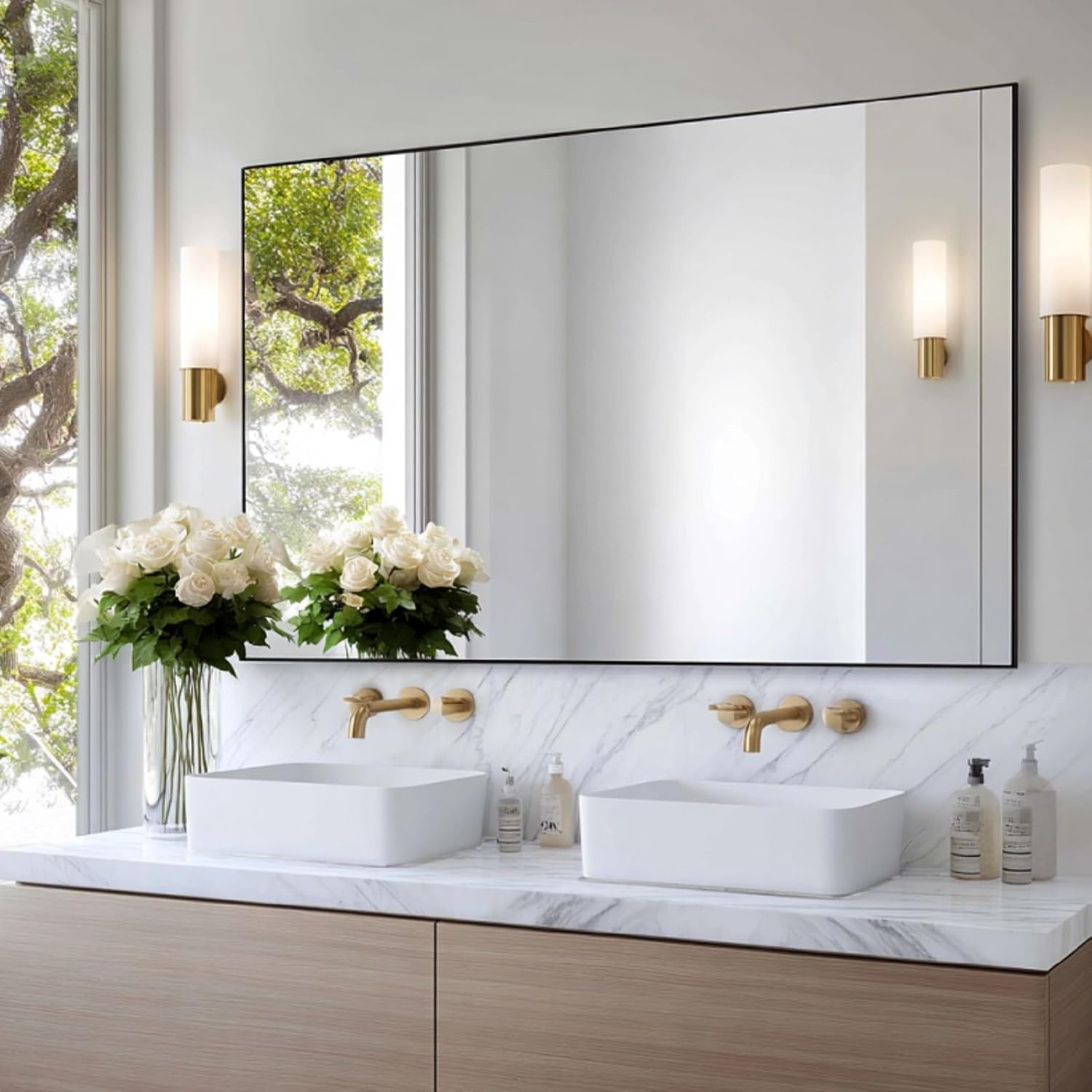 - Easy Installation:KOCUUY rectangular mirror can be installed horizontally or vertically. Please use the side frames for fixation to avoid excessive pressure on the top frame, ensuring even stress distribution and extending the mirror's lifespan. Follow this guide for best results