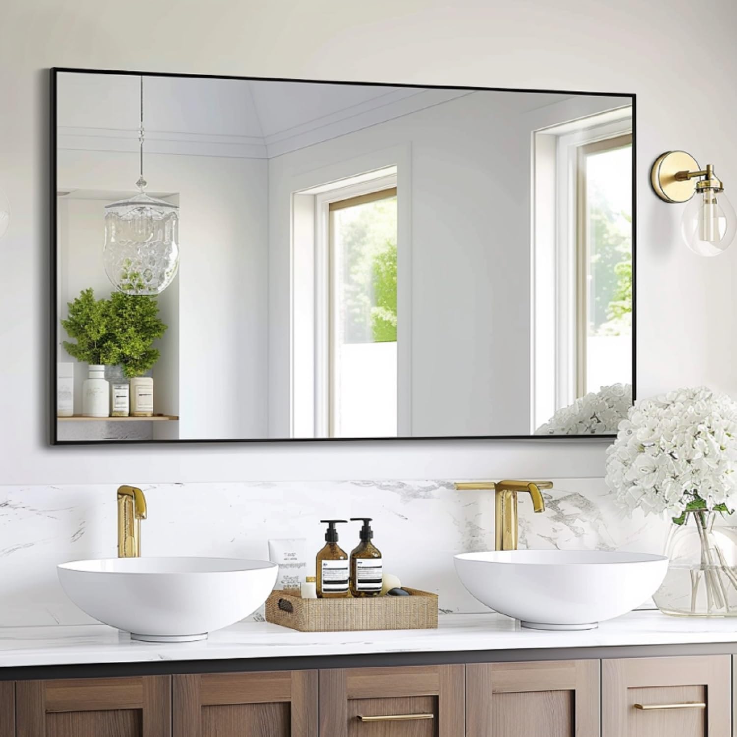 KOCUUY Black Bathroom Mirror, 55x36 Large Wall Mirror with Aluminum Frame, Black Rectangle Mirror Modern Home Decor for Bathroom, Living Room, Farmhouse, Entryway, Hang Horizontal/Vertical