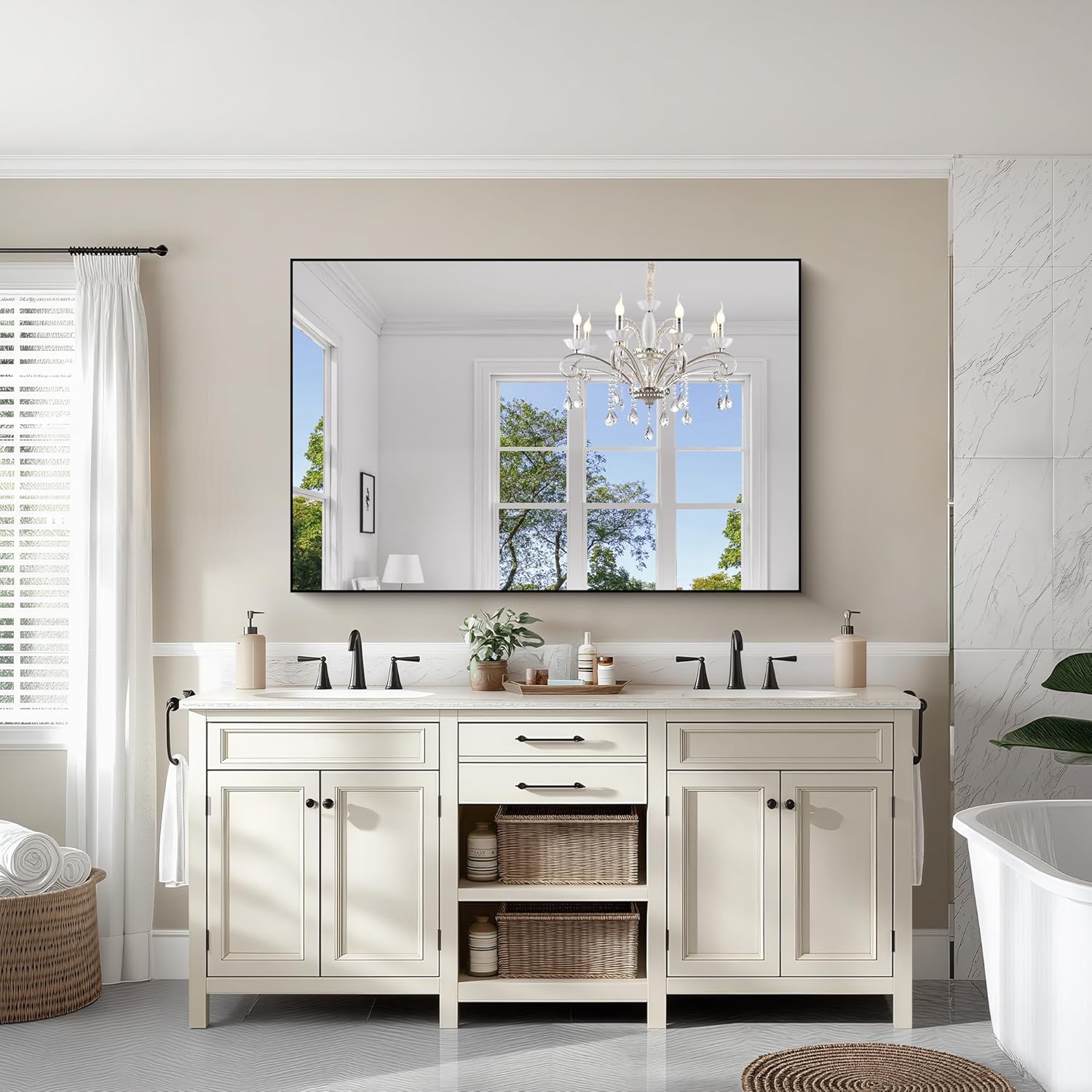 - Modern Design:KOCUUY 36x55 black vanity mirror is with innovative design which gives the wall mirror a more fashion feel. With a classic square corner, the wall mounted mirror allows for creativity and functionality in bathroom, bedroom, entryway and anywhere else. Let your living space be an expression of your personal style, not limited to modern or contemporary, farmhouse or industrial