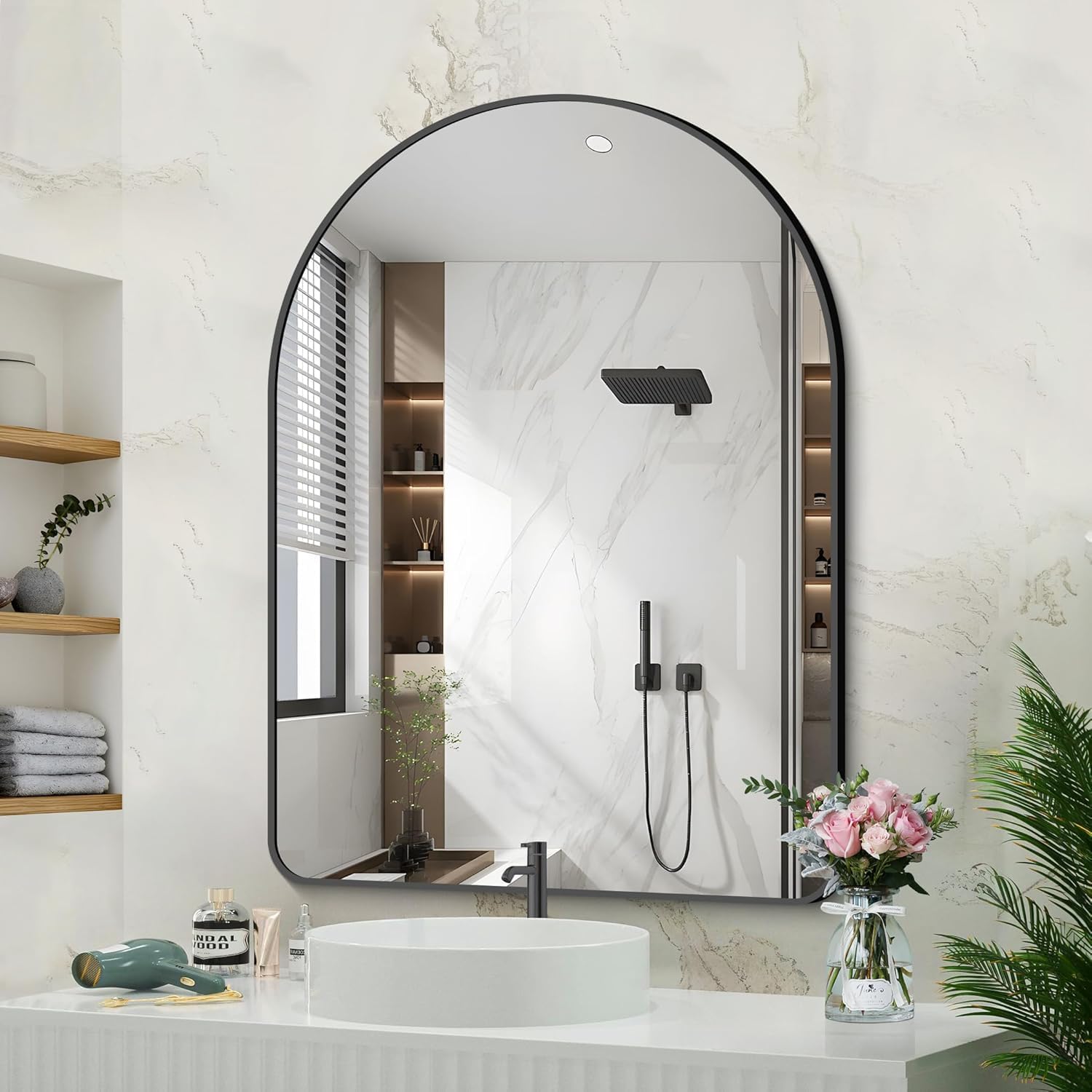 - Arched Bathroom Mirror Design: The Arched-top wall mirror makes your bathroom more elegant and classy, which especially attracts your eyes.bathroom mirrors for over sink,living room wall decor, black arched mirror Ideal for wall mirrors decorative, black mirror for bathroom make the space more brighter and spacious.