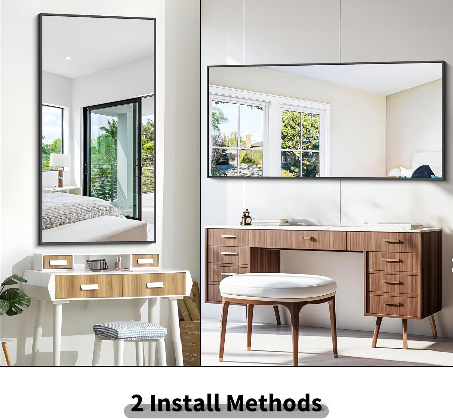 - 2 WAYS TO USE : BONEWEI Rectangle bathroom mirrors for wall can be used in 2 ways: 1. Horizontal (landscape) 2. Vertical hanging (portrait)