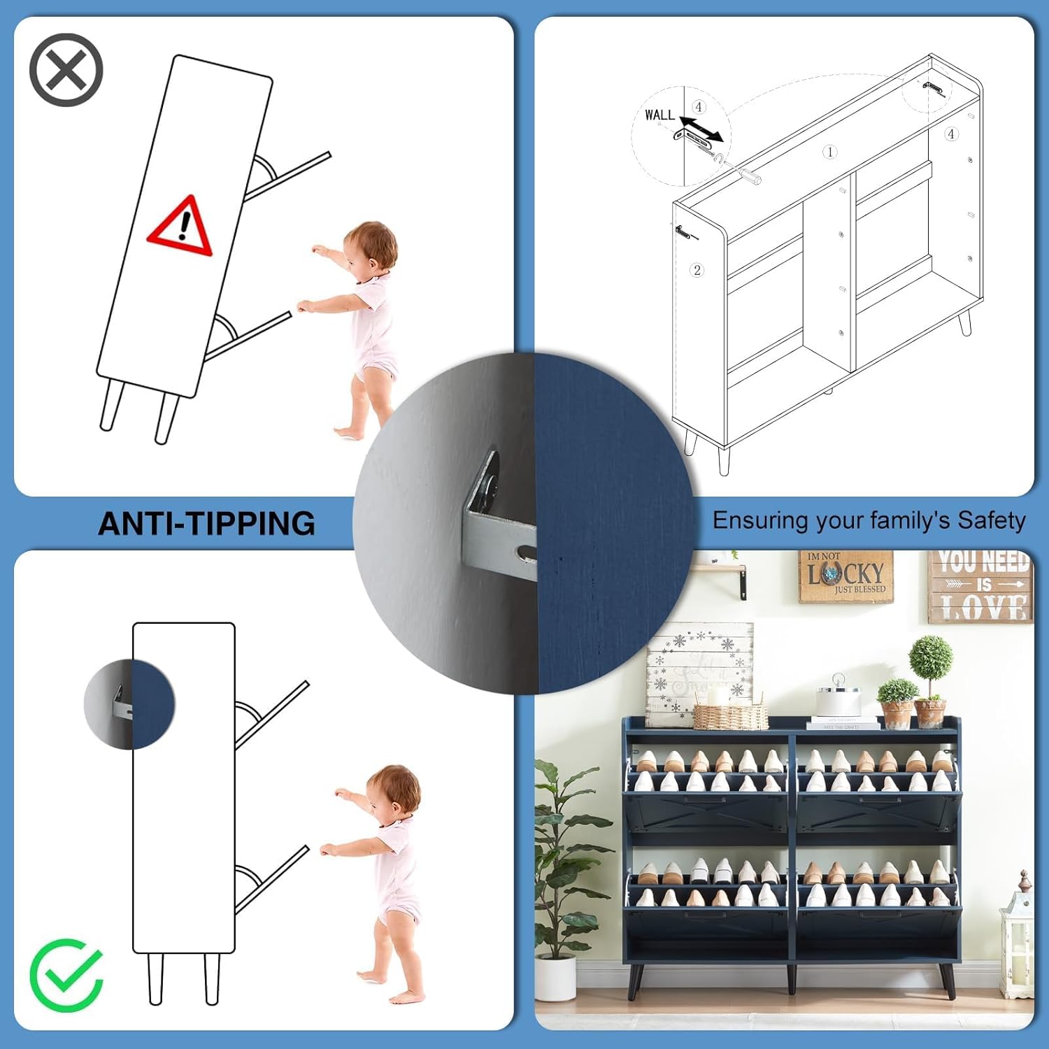 - 【Stable Structure】 Made of high-grade MDF, which lasts for long-term use and can bear the weight of a large number of shoes.The anti-tipping kits can prevent injuries from furniture tip-over, this item should be securely fixed to the wall