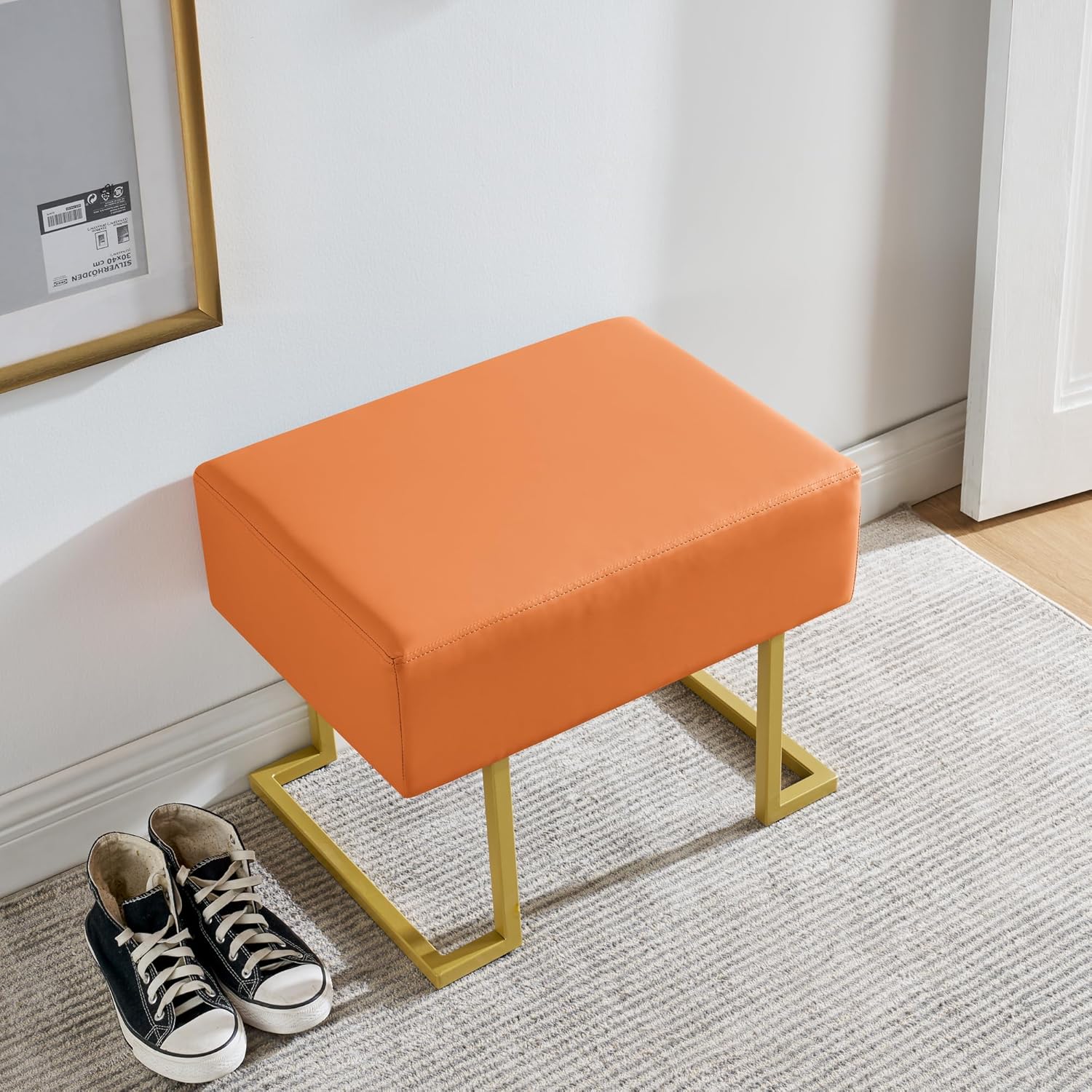Modern Style Bedroom Single Seat Bench, Cushioned Bed end Stool, Living Room Sofa Stool, Footstool with Golden Iron Legs, Suitable for Bedroom and Living Room (Orange, 21.65"x15.74"X16.53")