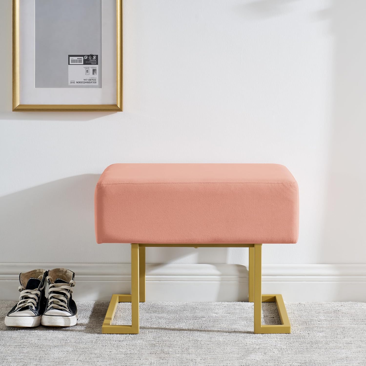 Modern Style Bedroom Single Seat Bench, Cushioned Bed end Stool, Living Room Sofa Stool, Footstool with Golden Iron Legs, Suitable for Bedroom and Living Room (Pink, 21.65"x15.74"X16.53")