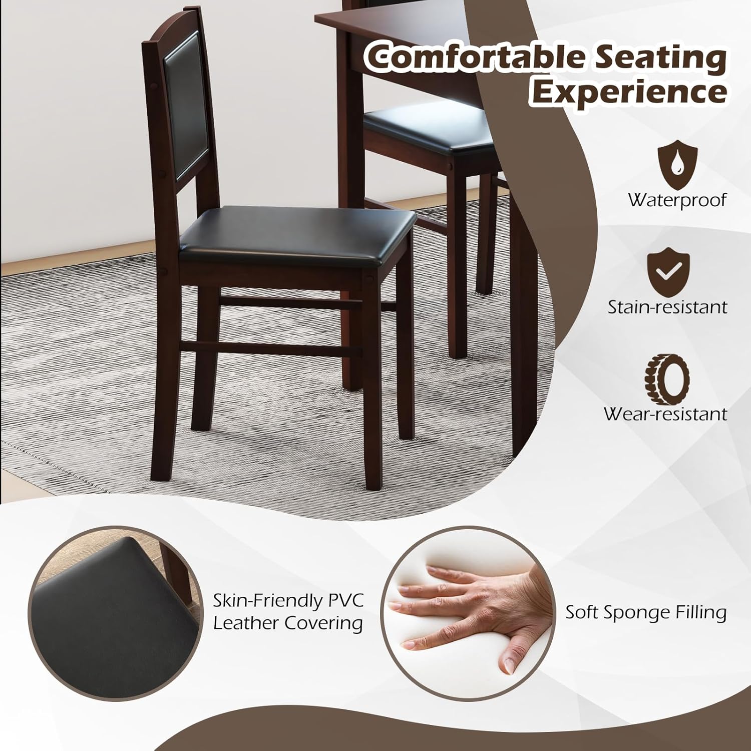 Giantex 5-Piece Dining Table Set for 4 - Breakfast Nook Table Set with Kitchen Table, 4 Upholstered Chairs, Wood Legs, Space-Saving Dinette Set, Kitchen Table Chairs Set of 4 (Cherry Brown)