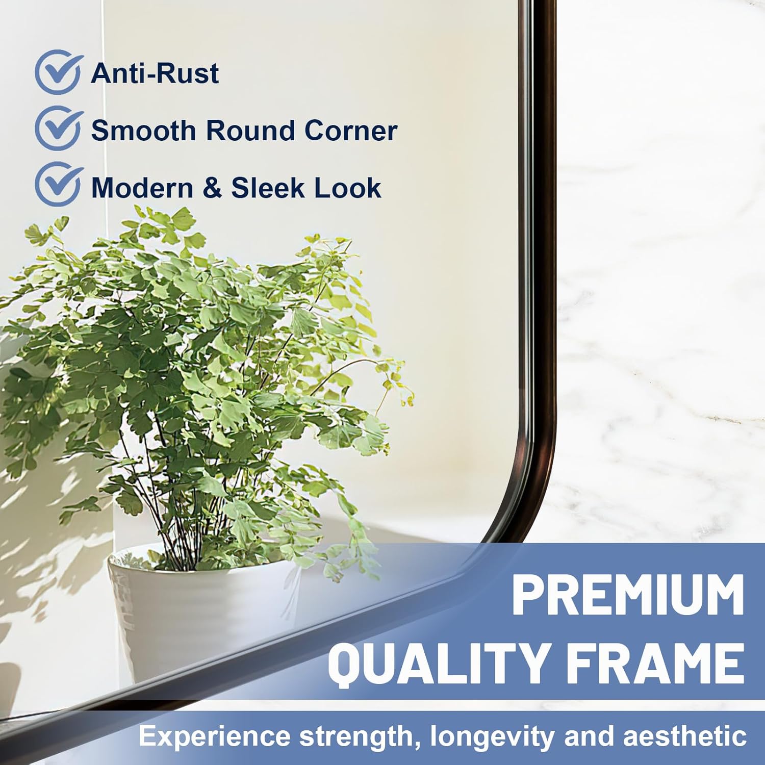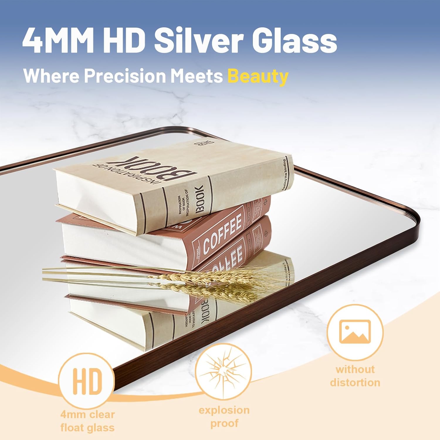 - Decor Your Space: This modern mirror features the stunning brushed bronze finish with a 1-inch deep frame for extreme simplicity; The rounded corner design to create a timeless aesthetic; Seamlessly into any style, be it modern, farmhouse, or rustic