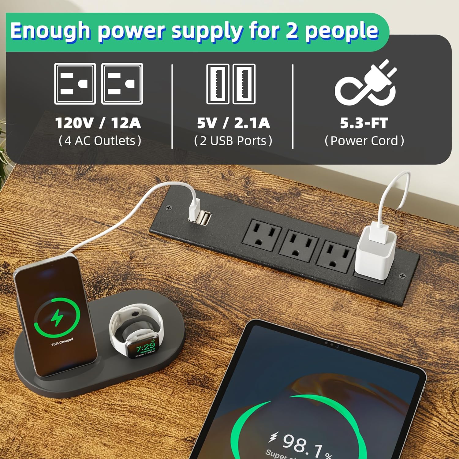 - 【4 AC, 2 USB Outlets】Conveniently charge your computer, laptop, printer, speakers, phones, tablets, and more. This office desk with drawers can meet all your charging needs in one place