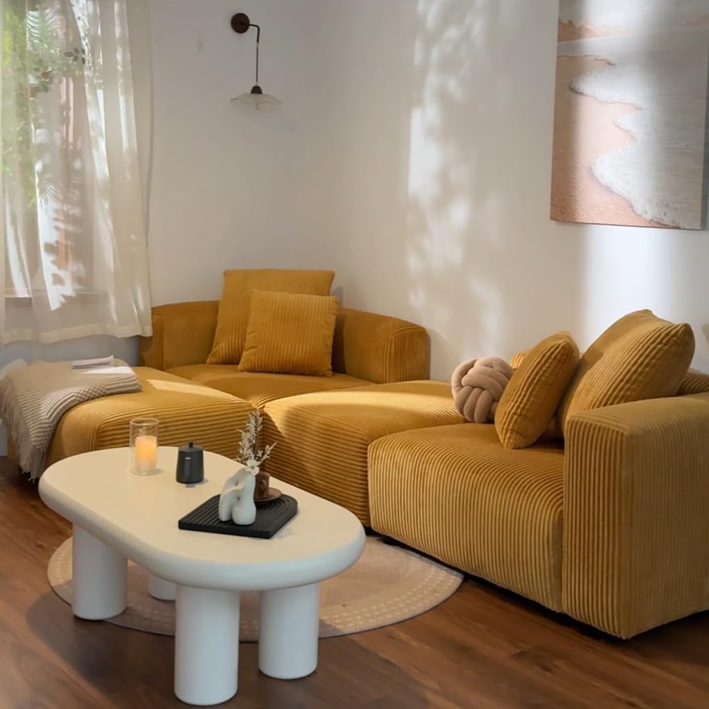 - Cloud-like corduroy sofa: The soft corduroy fabric not only exudes timeless elegance but also provides a plush and cozy seating experience. Its minimalist design makes the sectional sofa look warm and stylish, adding a touch of sophistication to any room.
