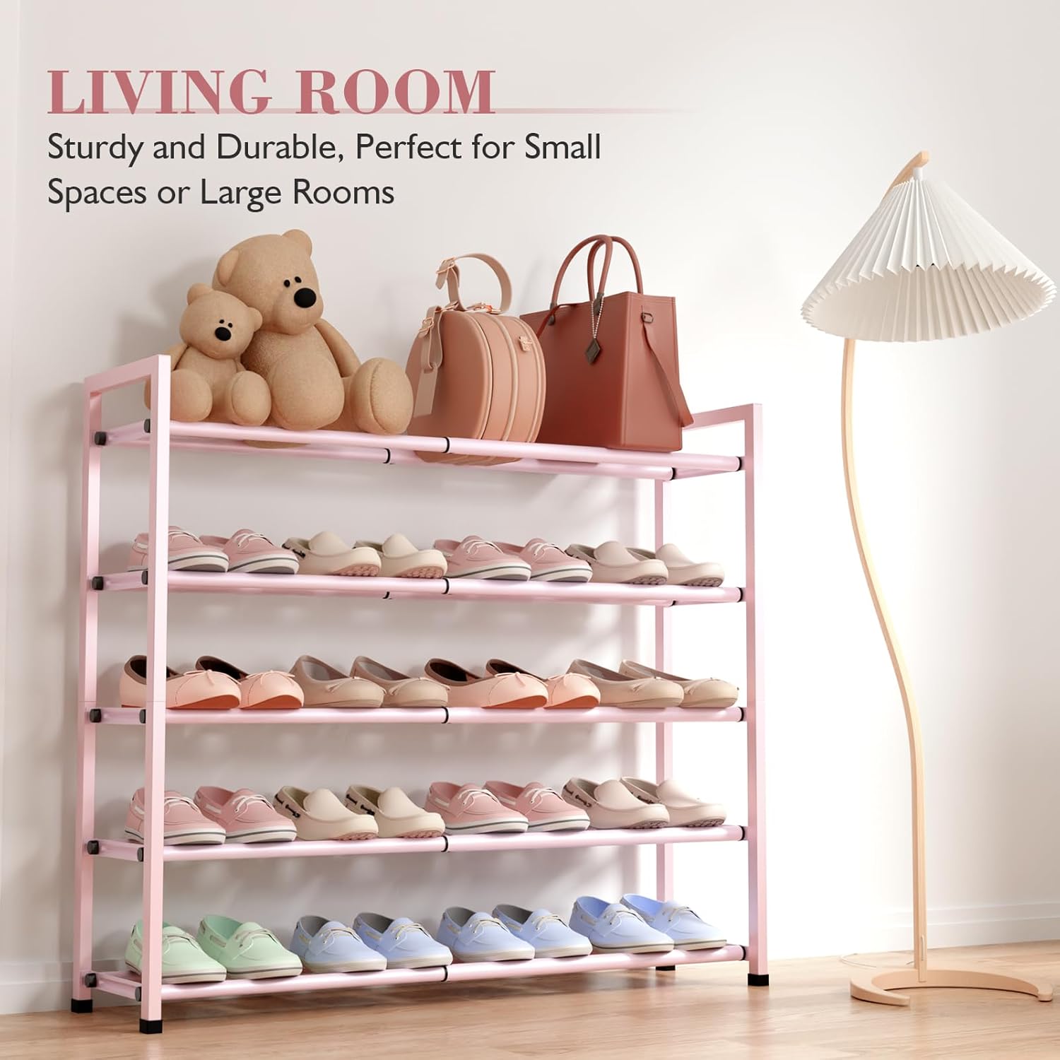 - HEAVY-DUTY CONSTRUCTION: Built with strong metal tubes to hold up to 15 pounds, it’s ready for everything from sandals to boots, providing a lasting storage solution.