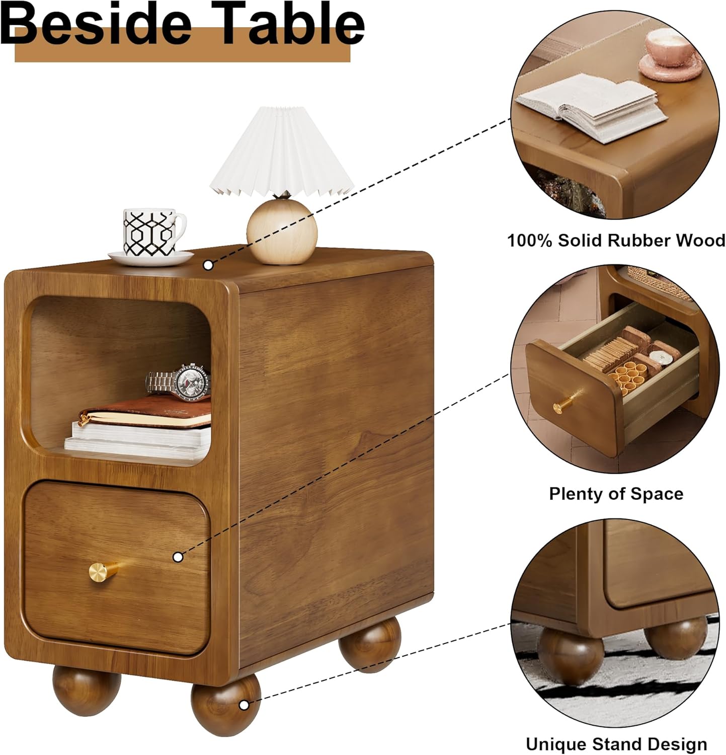 - 【Solid Rubberwood Nightstand】 Wooden nightstand is carefully made of high quality rubberwood to ensure its durability and stability. Rubberwood not only has high strength and long service life, but also has excellent wear resistance and is suitable for long-term use