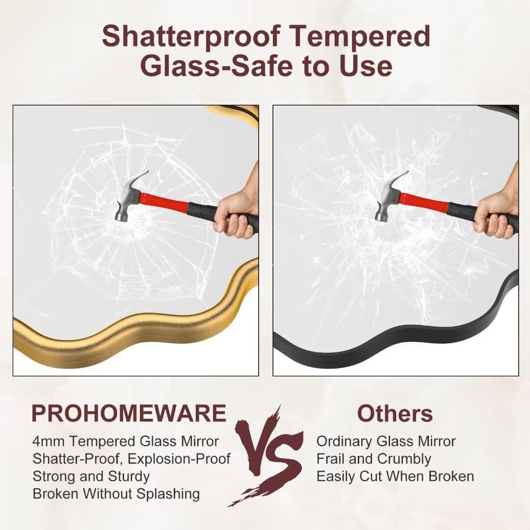 - 【Shatterproof Tempered Glass】: The wall-mounted bathroom mirror features 5MM tempered glass with shatterproof film, which is shatter-proof, burst-proof, and ensures your safety even in case of breakage