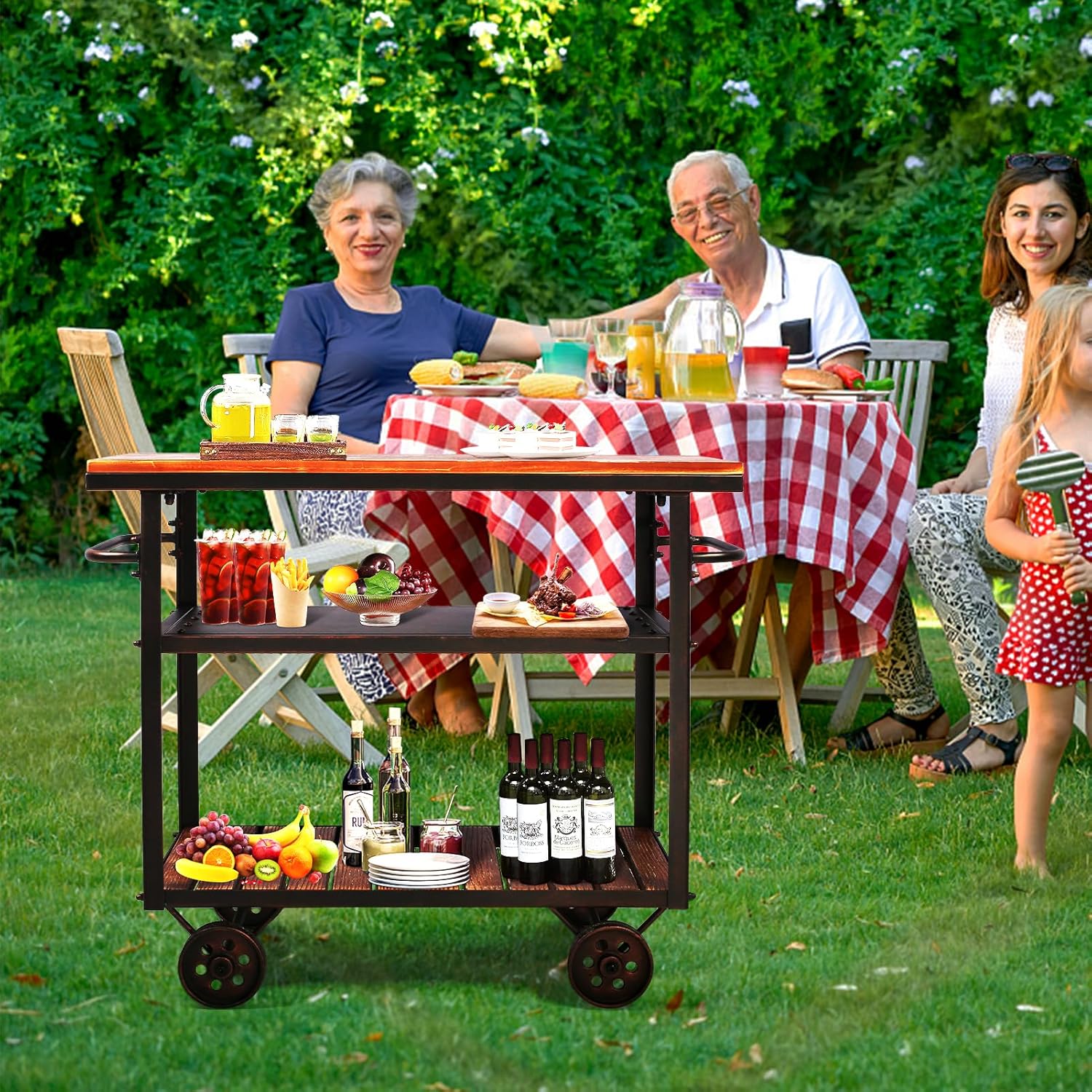 - [Sturdy Construction and Durable Material] Made of the iron frame and wood, this kitchen serving cart has great sturdiness, long service time and a great load capacity. And thanks to its high-quality materials, the utility bar cart has a stronger load-bearing capacity to meet your daily use needs.