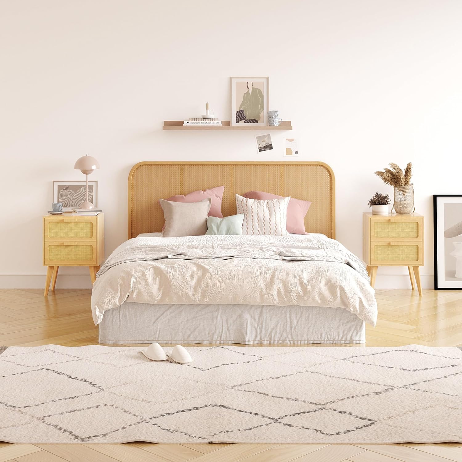- [ Natural Rattan Style ] The nightstand's drawer door surface is handcrafted from natural rattan,is beautiful and practical,the rattan mesh design keeps the air flowing in addition to the storage.Modern and boho fusion adds a stylish touch to your space
