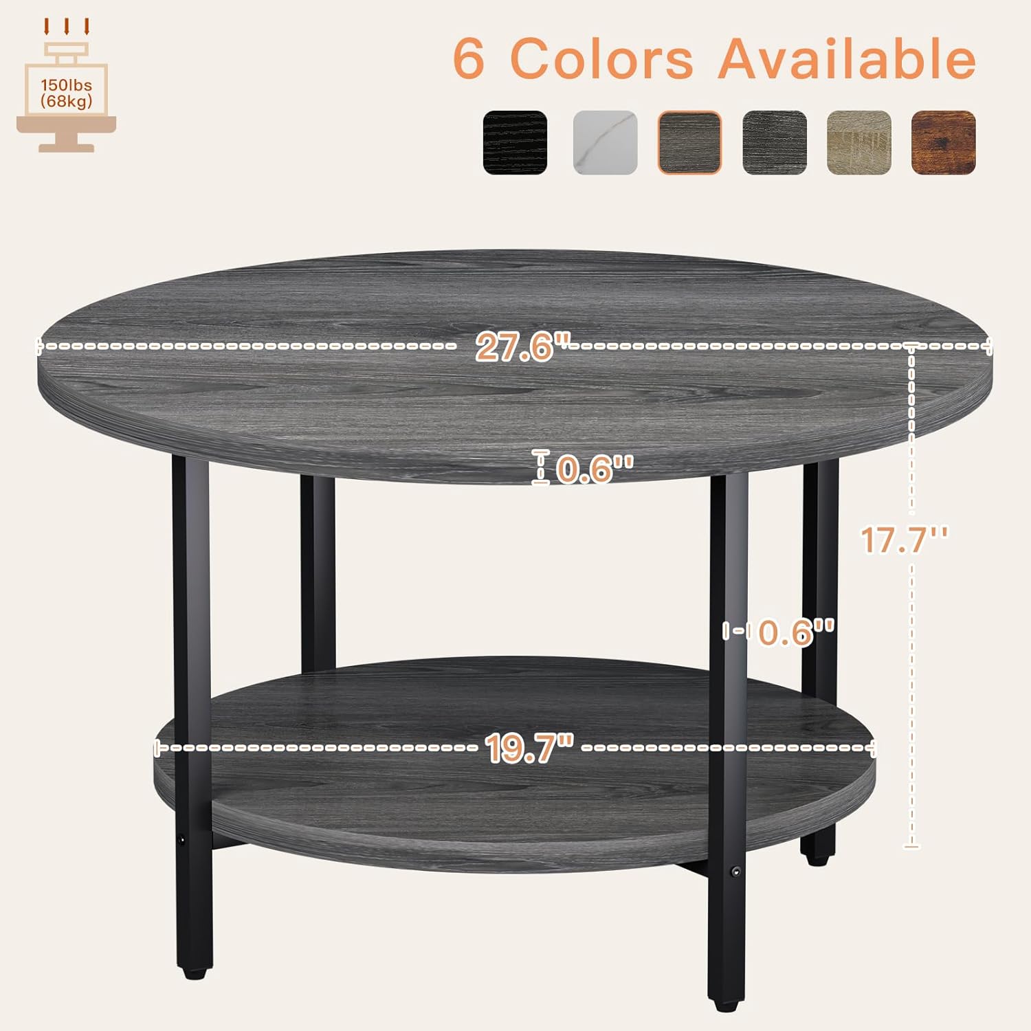 - Compact Size & Practical: 27.6"D x 17.7"H round coffee table for living room won't take up much space in your apartment, and you can constantly and easily move small coffee table. Just enjoy your leisure time with your circular coffee table cocktail table. Vintage and industrial style is suitable for any style of office, farmhouse room, outdoor, balcony, patio