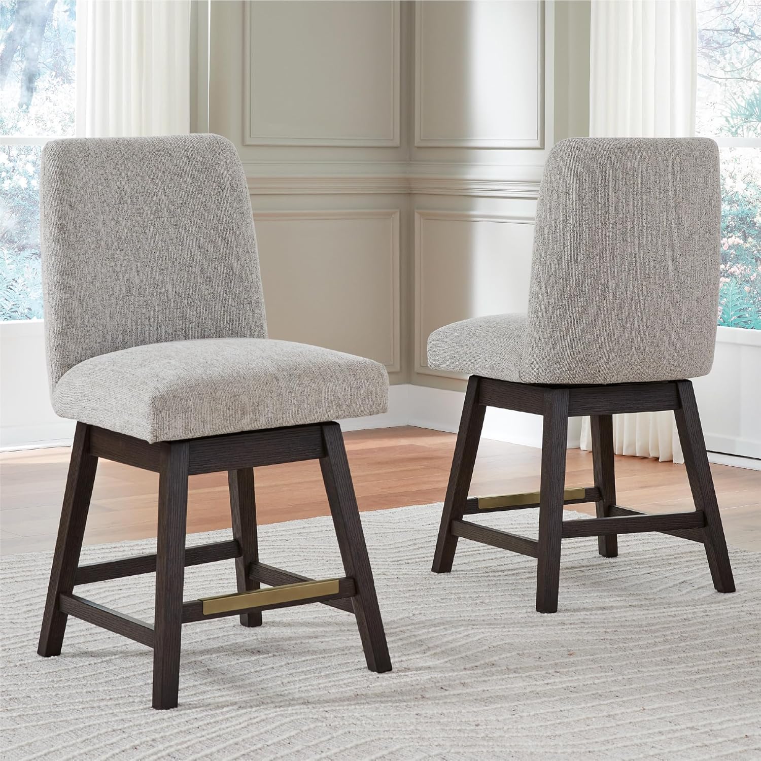 Signature Design by Ashley Burkhaus Urban Counter Height Upholstered Swivel Bar Stool with Footrest, Set of 2, Beige & Dark Brown