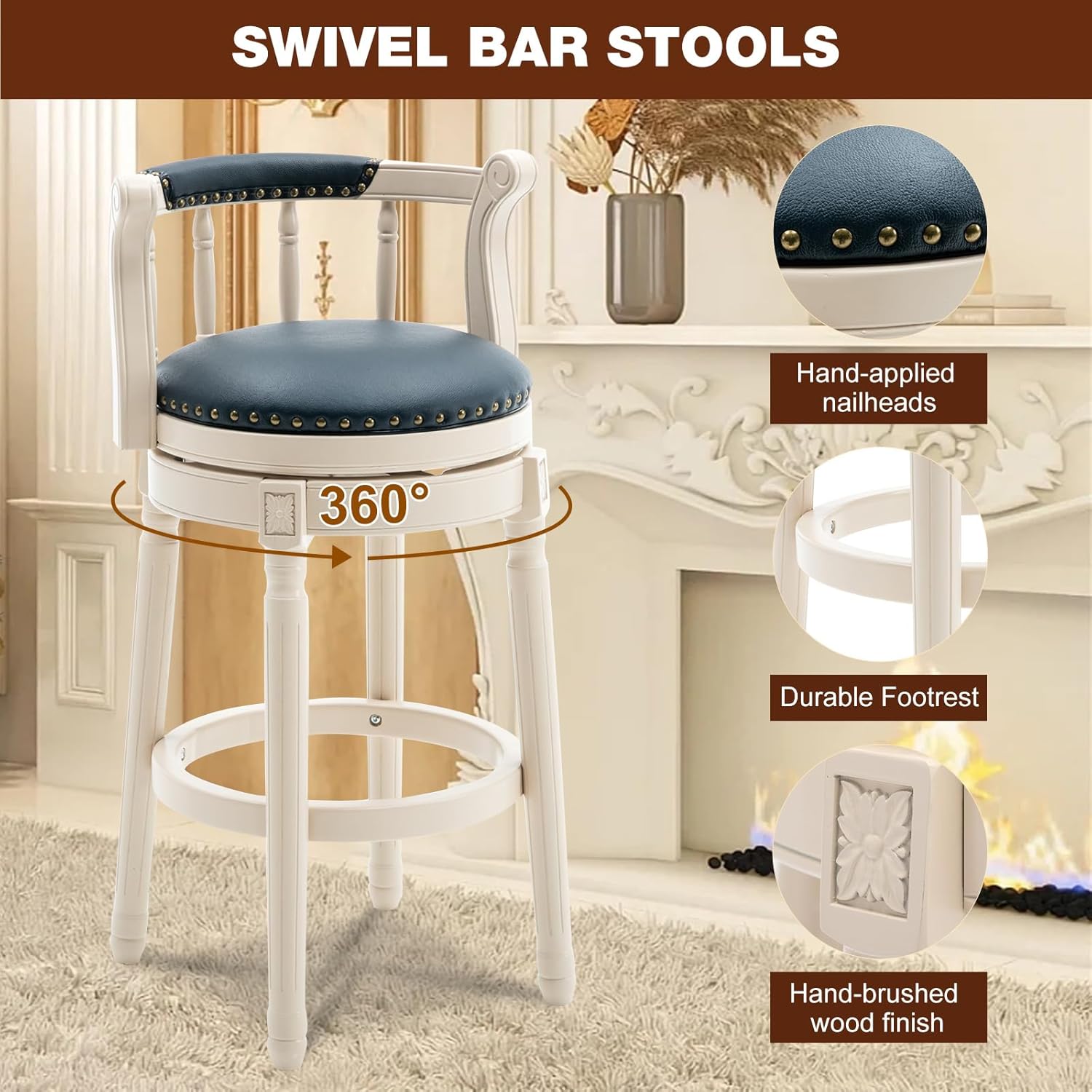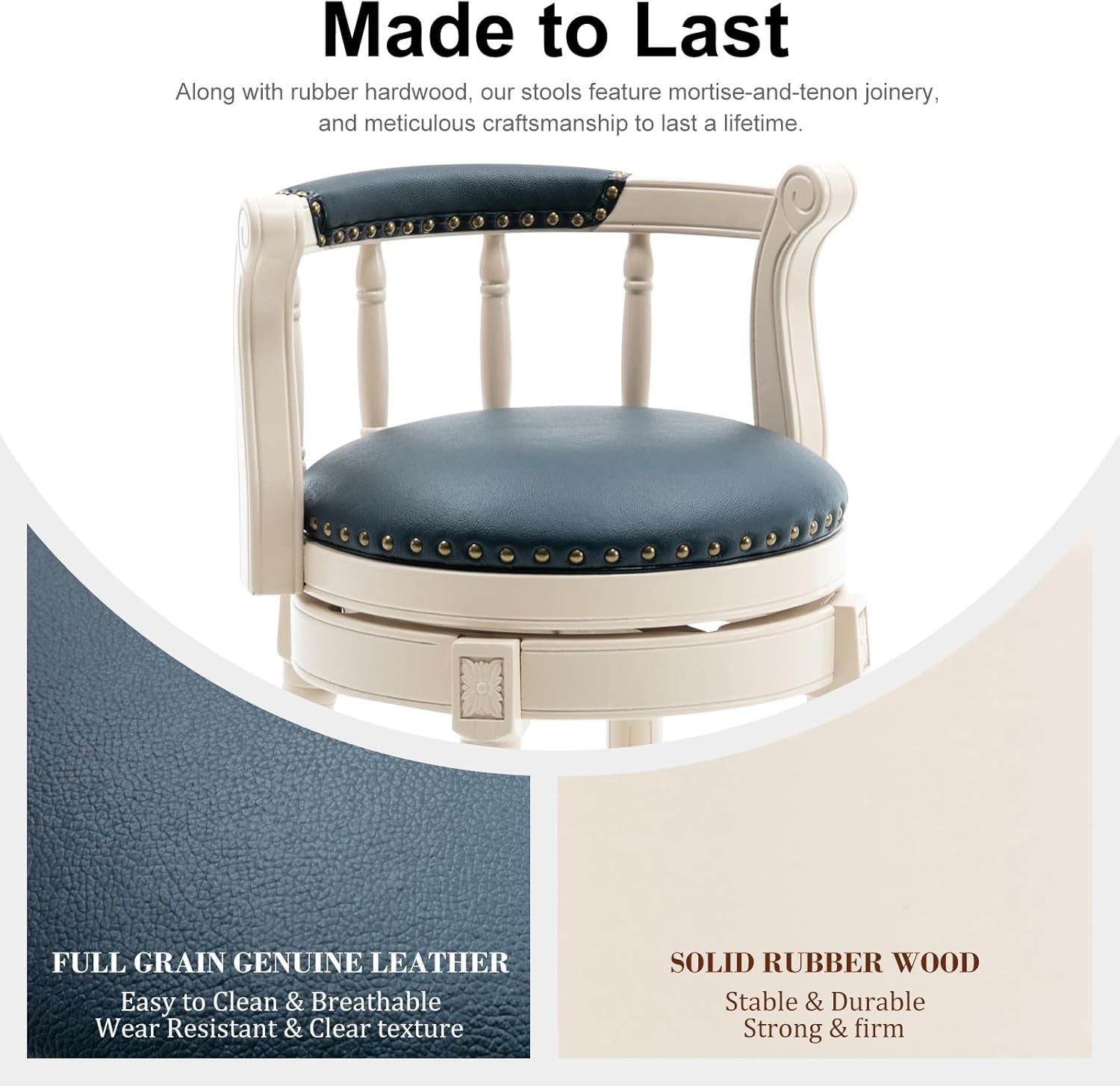 CozyRain Bar Stools Modern Swivel Barstools, Kitchen Counter Genuine Leather Upholstered Bar Stool Island Barstool with Footrest for Home Kitchen Dining Room (Blue, Seat Height 29.5 in)