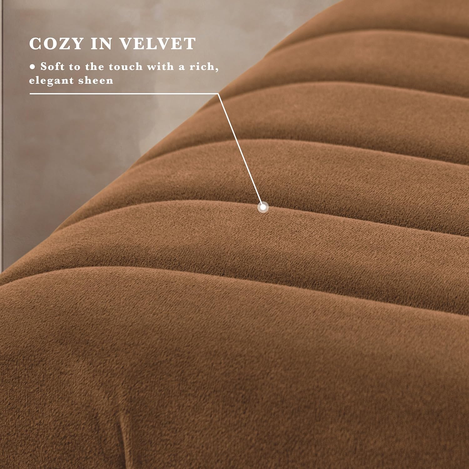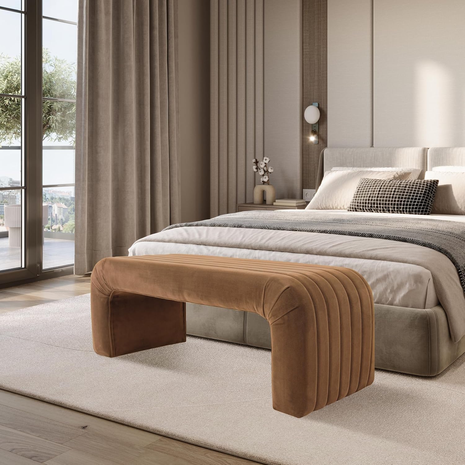 - The end of bed bench is a luxurious addition to any bedroom, and this channel bench is no exception. Featuring a sturdy wood frame and velvet fabric, it's the perfect spot to sit and relax after a long day