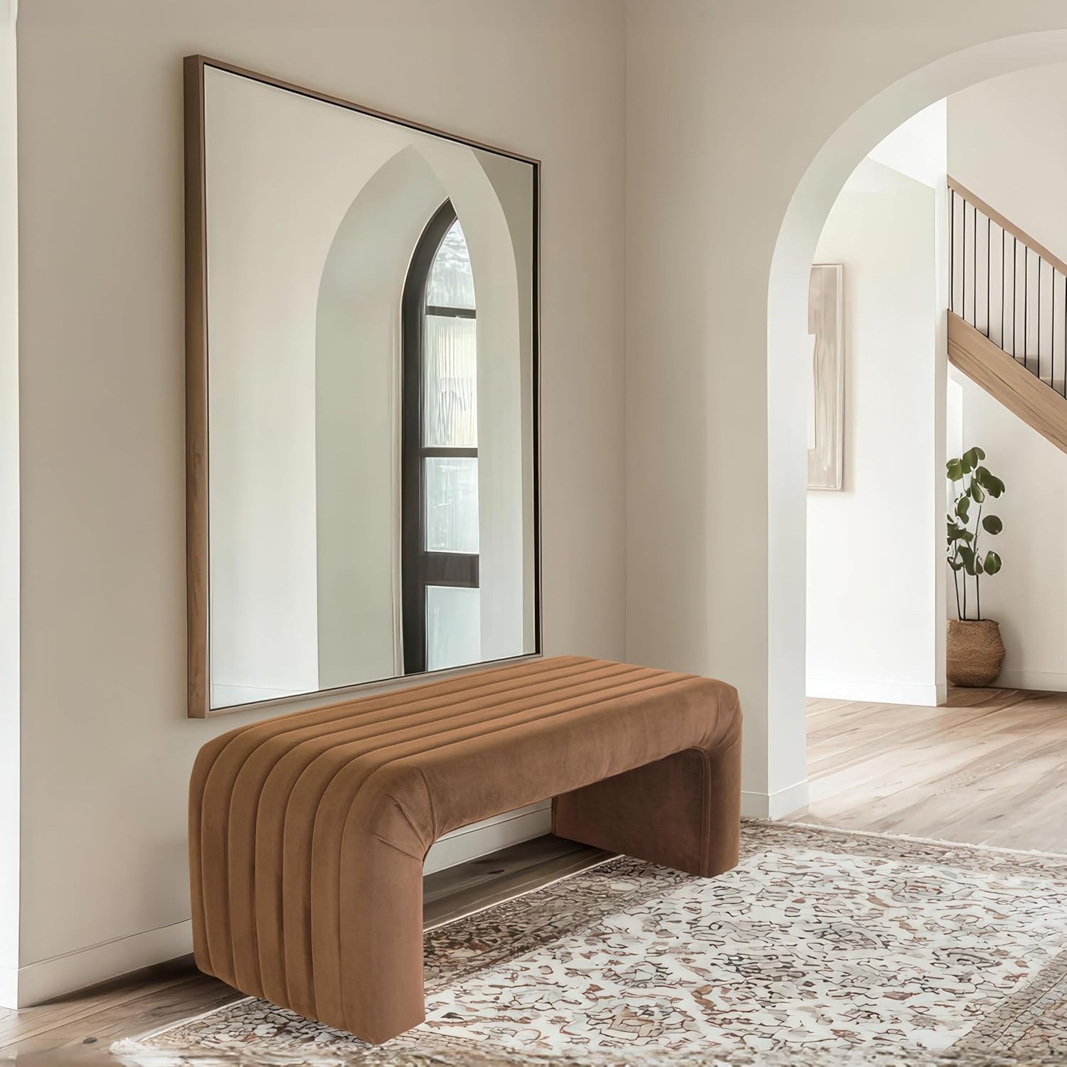 HomePop Arch Channel Bench|Bench for Living Room & Bedroom | Decorative Home Furniture - Rust Orange Velvet