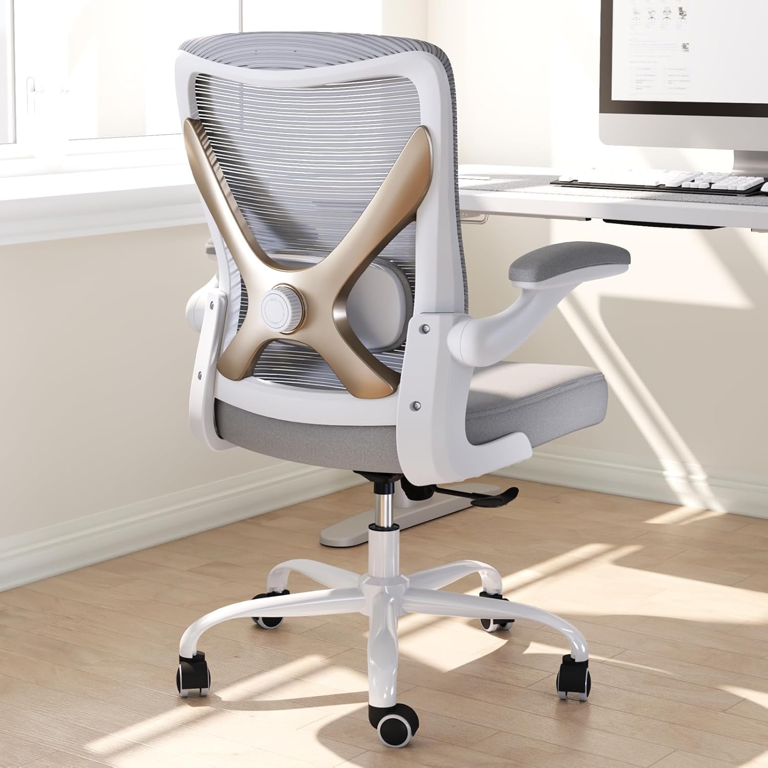 Ergonomic Office Chair with Lumbar Support - Adjustable Computer Desk Chairs for Home Office, Gaming, and Work - Comfortable and Supportive Desk Chairs for Adults(Grey Gold)