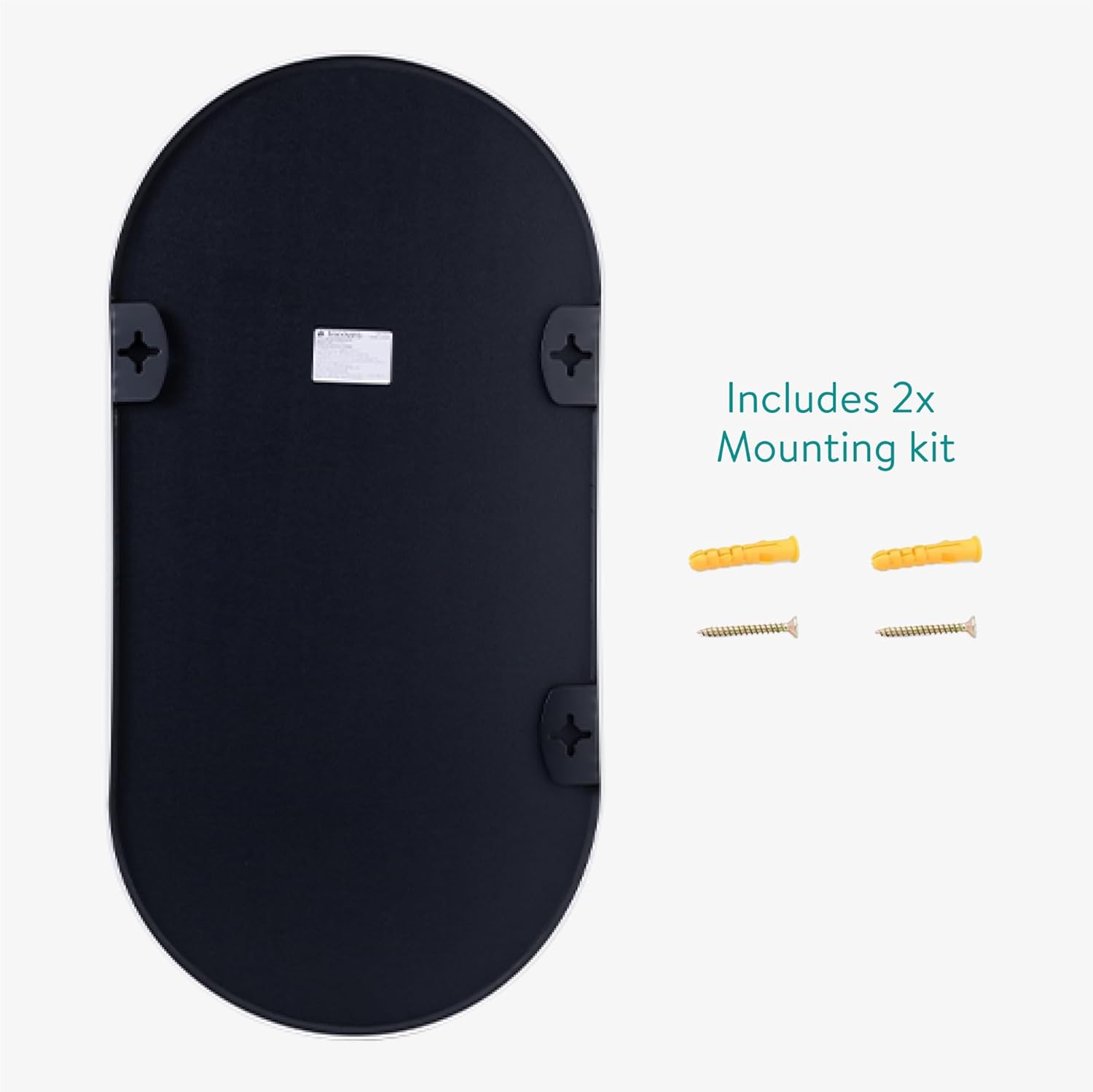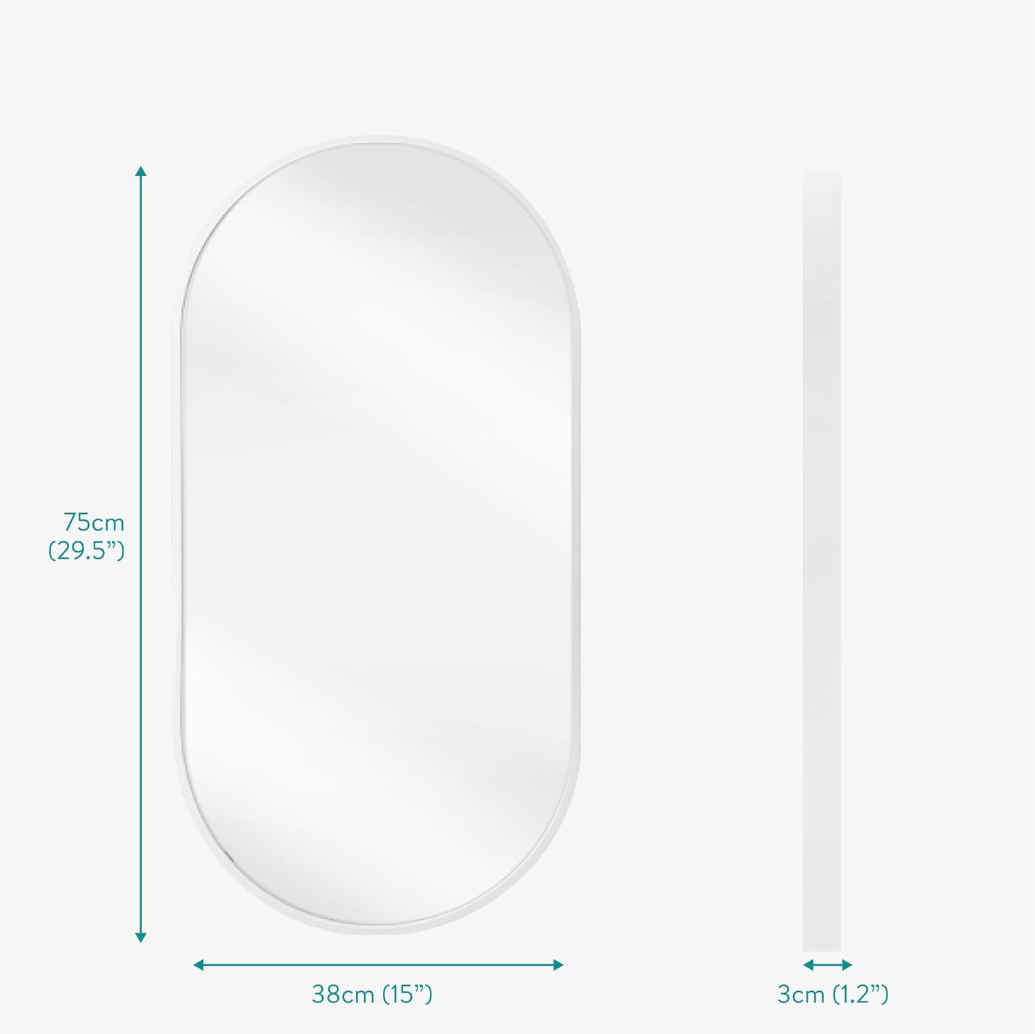 Navaris Oval Wall Mirror - 75 x 38 x 3 cm - Wall Mounted Hanging Mirror with White Rustproof Aluminium Frame - Round Mirror for Bathroom Bedroom Hallway