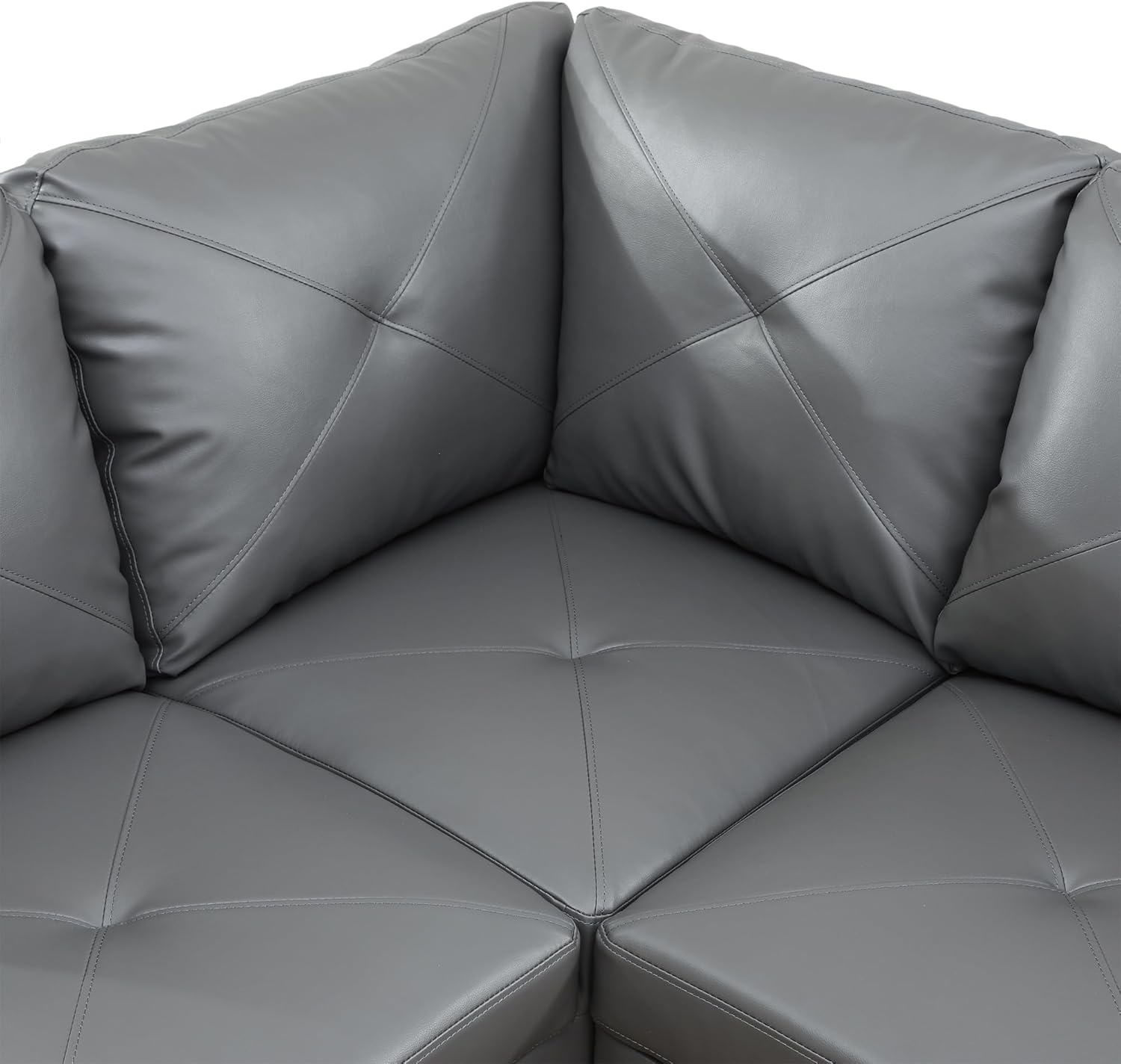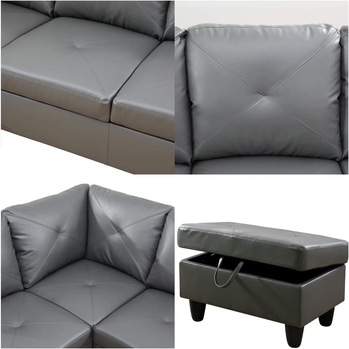 L Shaped Sectional Sofa with Ottoman, Leather Right Facing Modern Couches for Living Room, Bedroom, Office