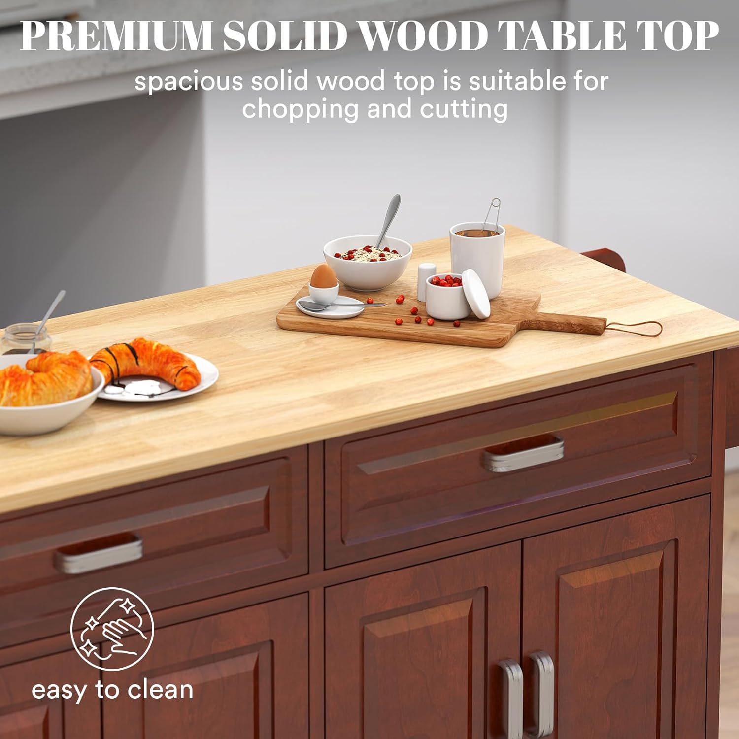 - 【MOBILE KITCHEN ISLANDS WITH LARGE WORKTOP】The solid wood countertop provides a smooth and safe surface to do all of your food preparation for chopping or cutting while being easy to clean with just a wipe of a kitchen towel or cloth.