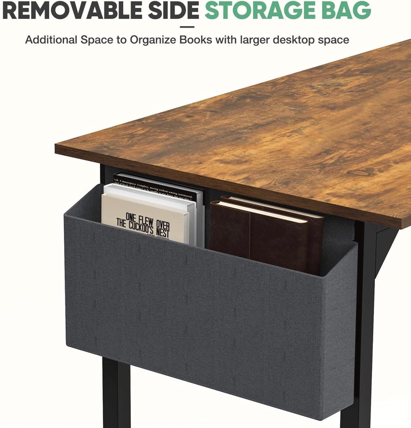 - 【Convenient Storage and Detachable Hook】 A side-mounted storage bag on the work desk offers extra space for books and office supplies, enhancing organization. On the other side, the detachable hook is handy for hanging headphones or a bag. This small writing desk is great for students, teenagers, and adults, making it a wonderful teenager desk or working desk.