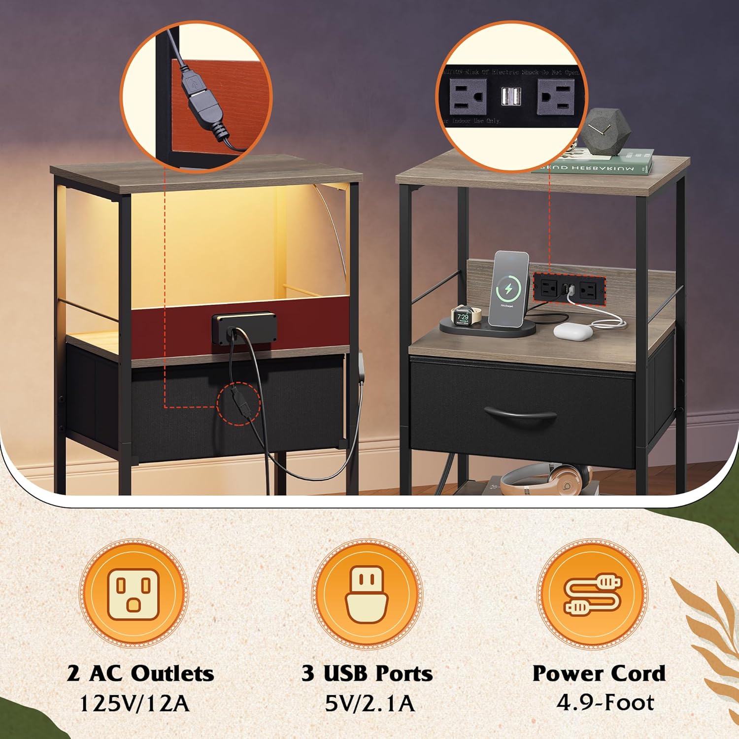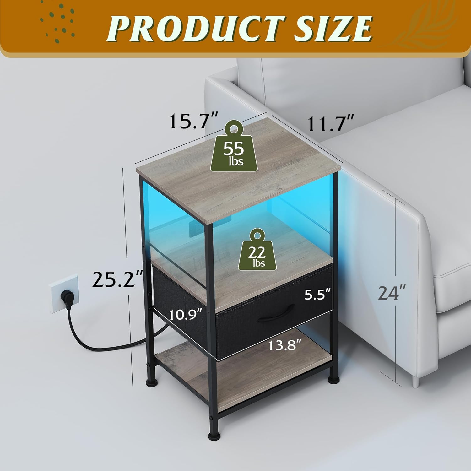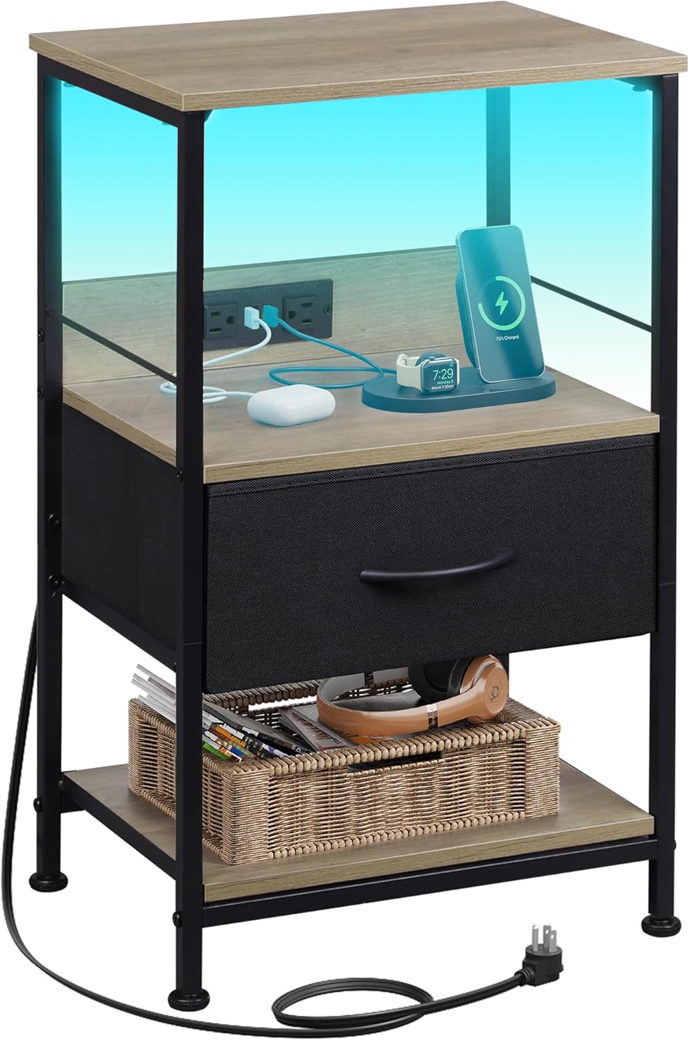 - [Night Stand with Charger Station] This tall nightstand packs a punch with 3 USB ports and 2 AC outlets, so you can charge your smartphone and iPad all at once. No more hunting for charging ports! Plus, it has dedicated spots for LED light strips. The end table's built-in power design also keeps spills at bay, ensuring safety during everyday use.