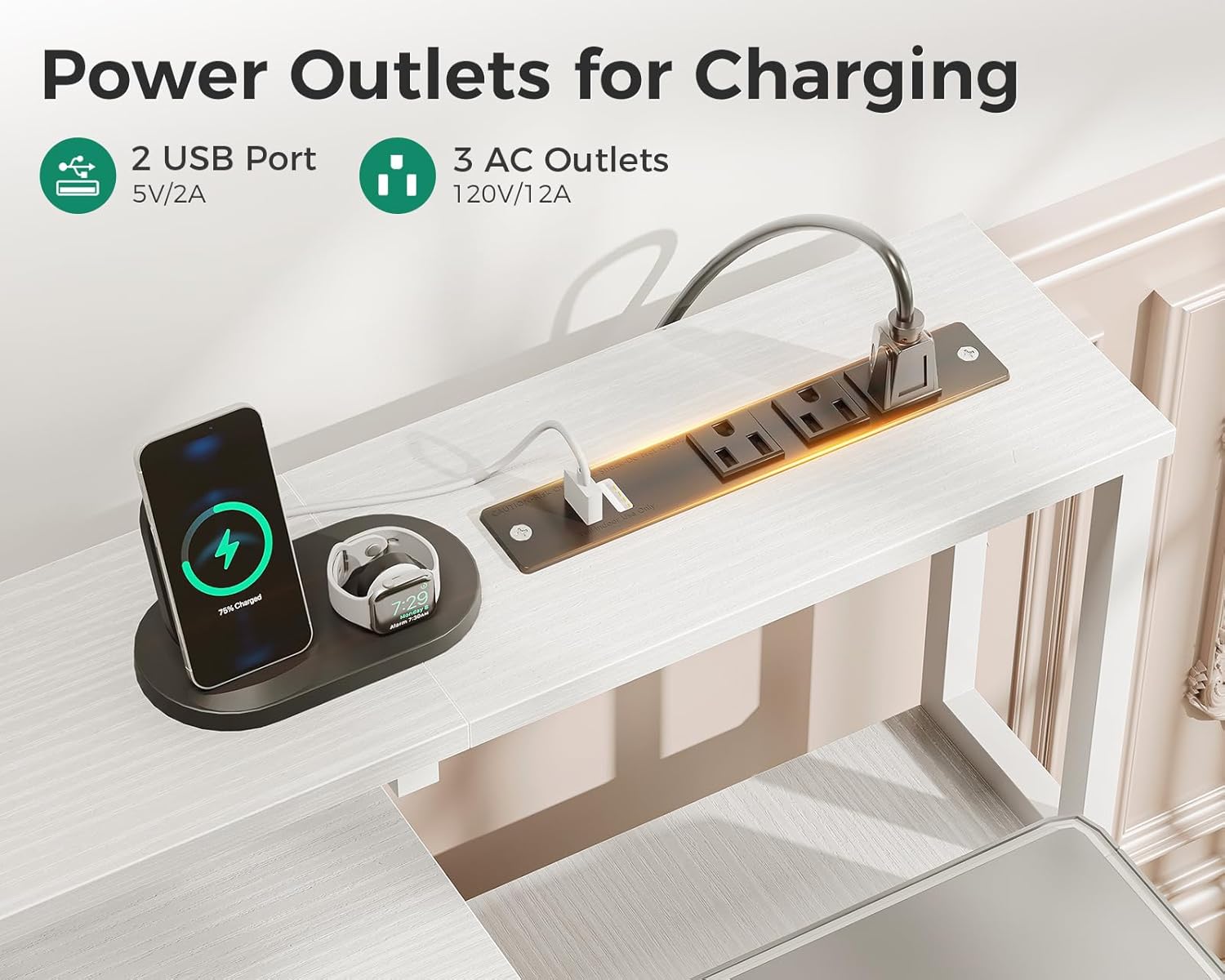 - 【USB Ports & Power Outlets】Our home office desk features an integrated power center with 3 AC outlets and 2 USB ports, enabling fast charging for your smartphones, tablets, or gaming devices. Keep cables tidy and your workspace clutter-free—effortless power, zero distractions