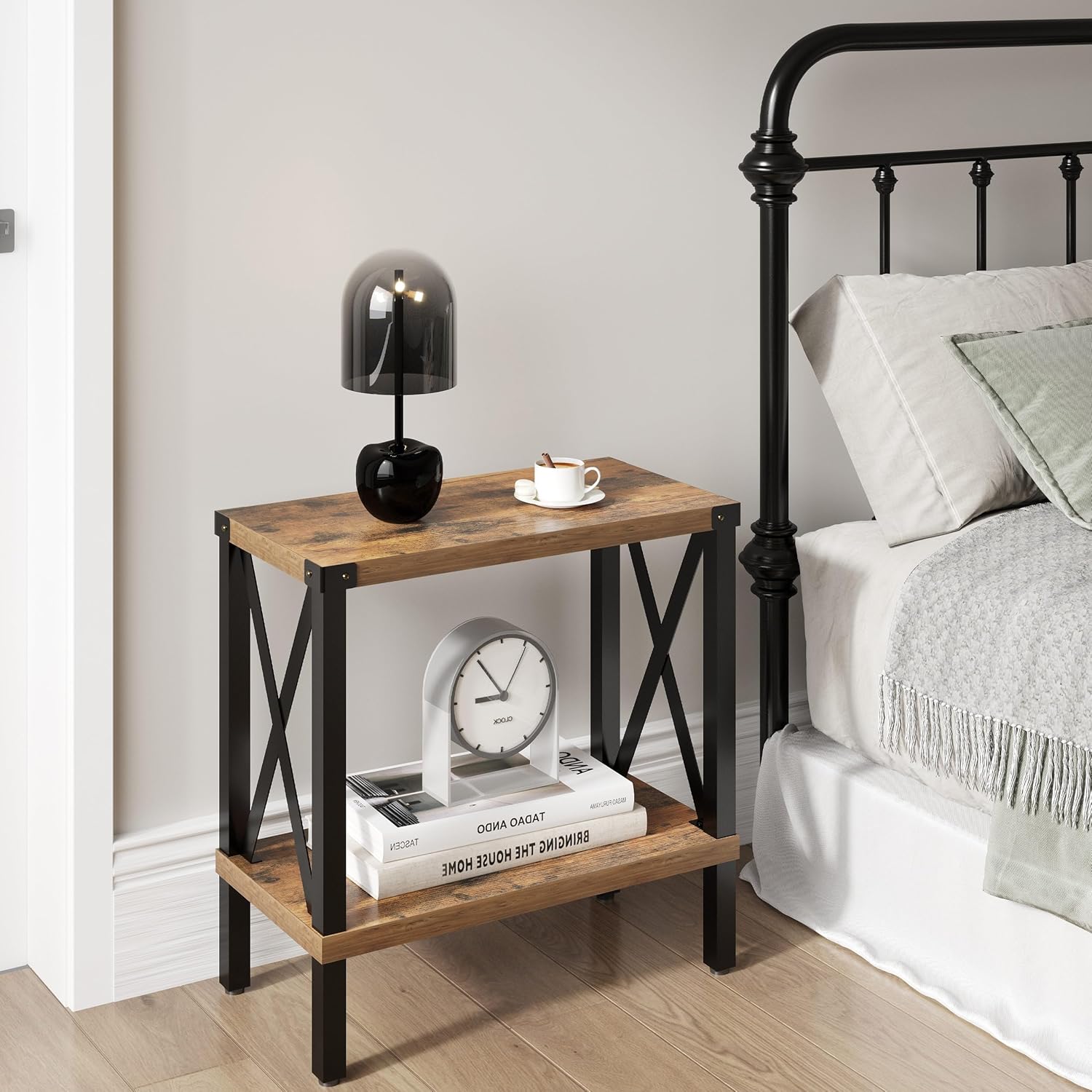 - Save Space: The simple 2-tiers open design style increases the storage space, you can put some slightly larger items on the side table, In addition to that, you can also place remote control, notebook computers,telephones, books, lamps and other daily necessities