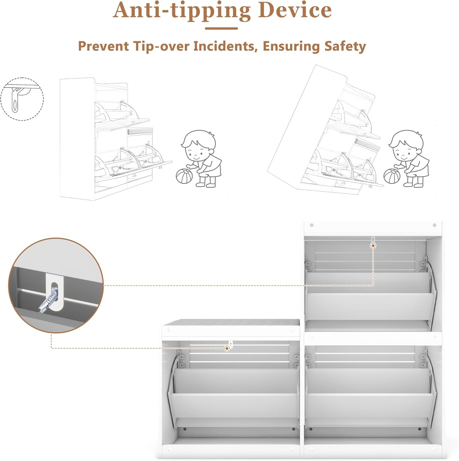 - STYLISH SHOE STORAGE CABINET: Stylish and simple white matching plus louvered doors, makes it a neat and beautiful finish. Equipped with wide tabletop, our shoe cabinet provides an ample space to put up some decorations, looks better in your home styles.