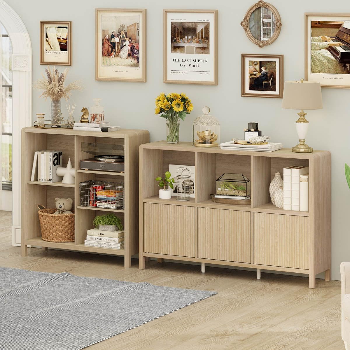 - [Stable Structure & High Weight Capacity] Featuring a chunky tabletop, sturdy bottom shelf, and 1.1-inch thick wood leg frames, this farmhouse bookshelf offers impressive weight capacity. For stability, it includes wall attachment hardware to avoid tipping. Its solid construction ensures long-term durability, making it a practical addition to any living room. The top and bottom shelves can each hold 150 lbs, and each adjustable shelf supports 65 lbs