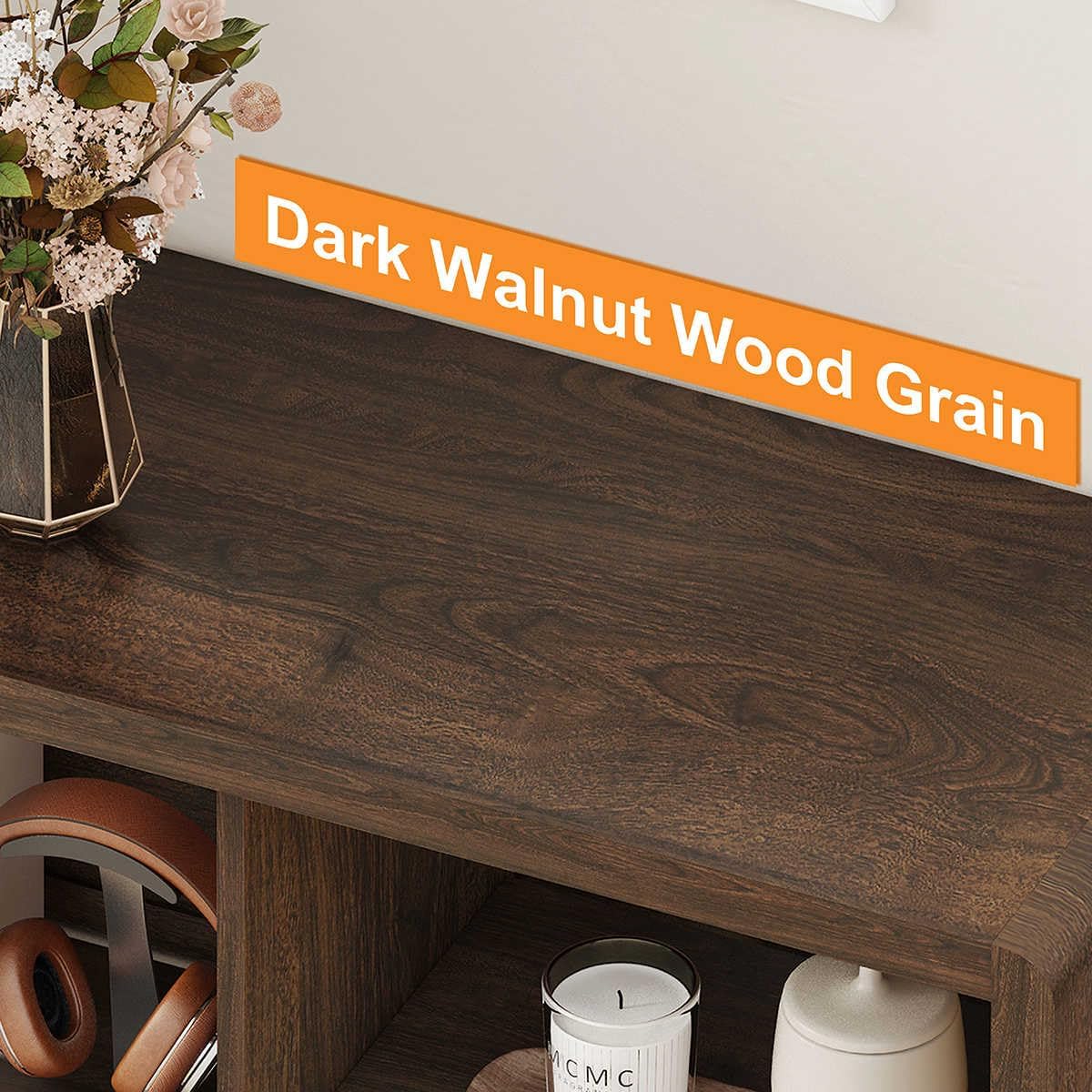 - [Minimalism & Modern Design]: Designed with minimalist lines and rounded corners, this wood bookcase with a dark walnut finish showcases natural wood grain, adding sophistication and warmth. Its sleek profile enhances security and brings charming style to any room