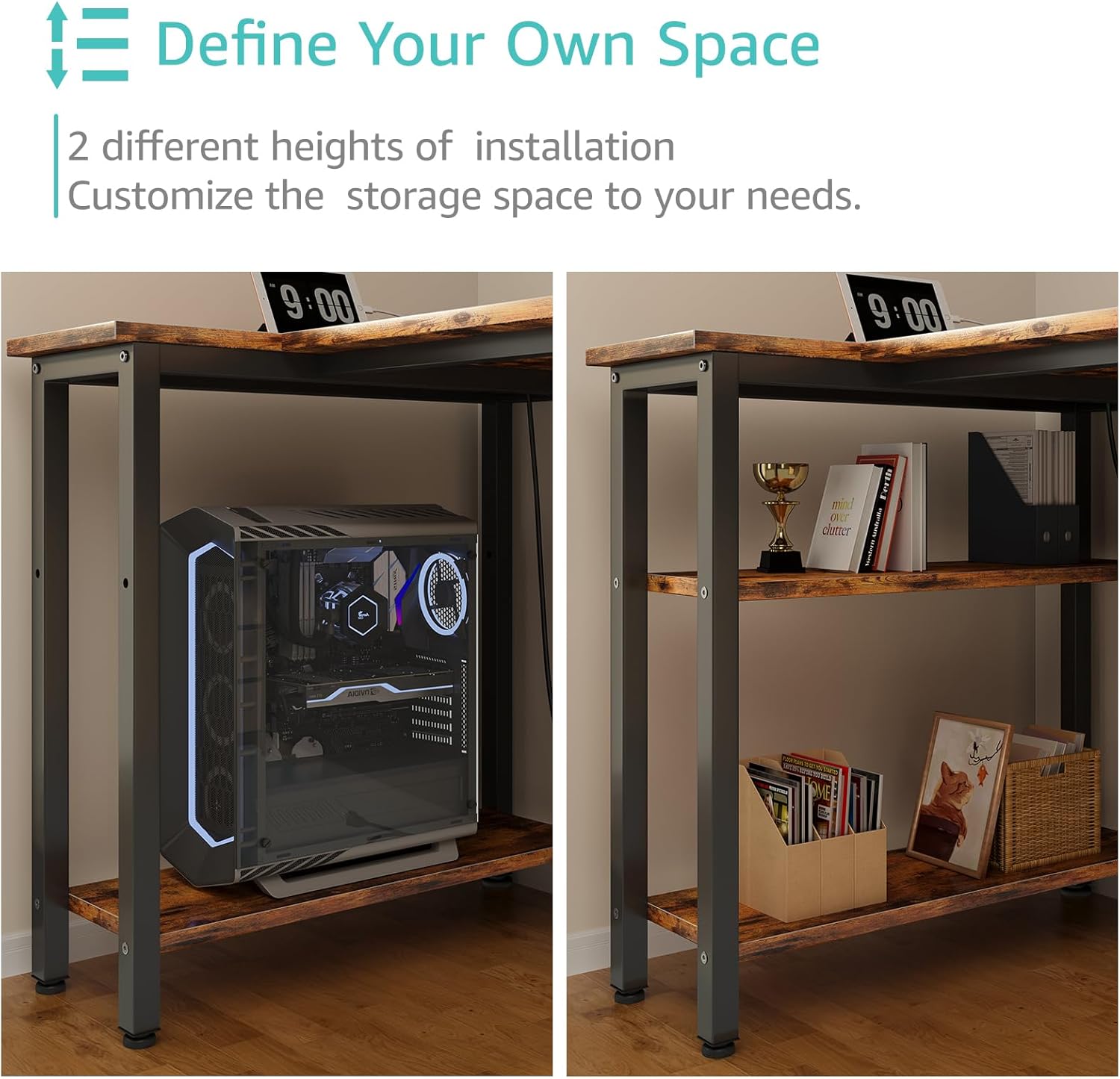 - Modern Simple Style Design: Computer desk with 2 storage shelves and 4 ππππ§ππ πΏπ§ππ¬ππ§π¨, you can try this two installation methods (left or right), and the shelves have two different heights of installation, you can customize the storage space to your needs. This desk is made of thick P2 particle wood board with scratch-resistant, anti-collision and waterproof, protect home office desk surface from daily wear and tear
