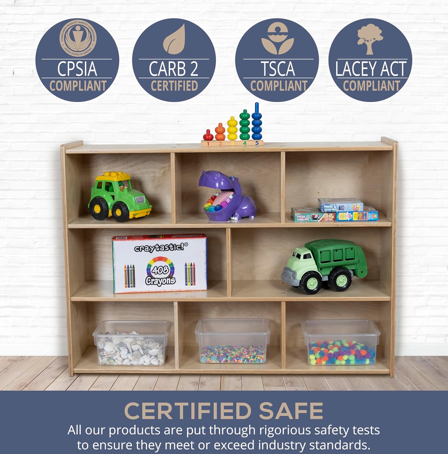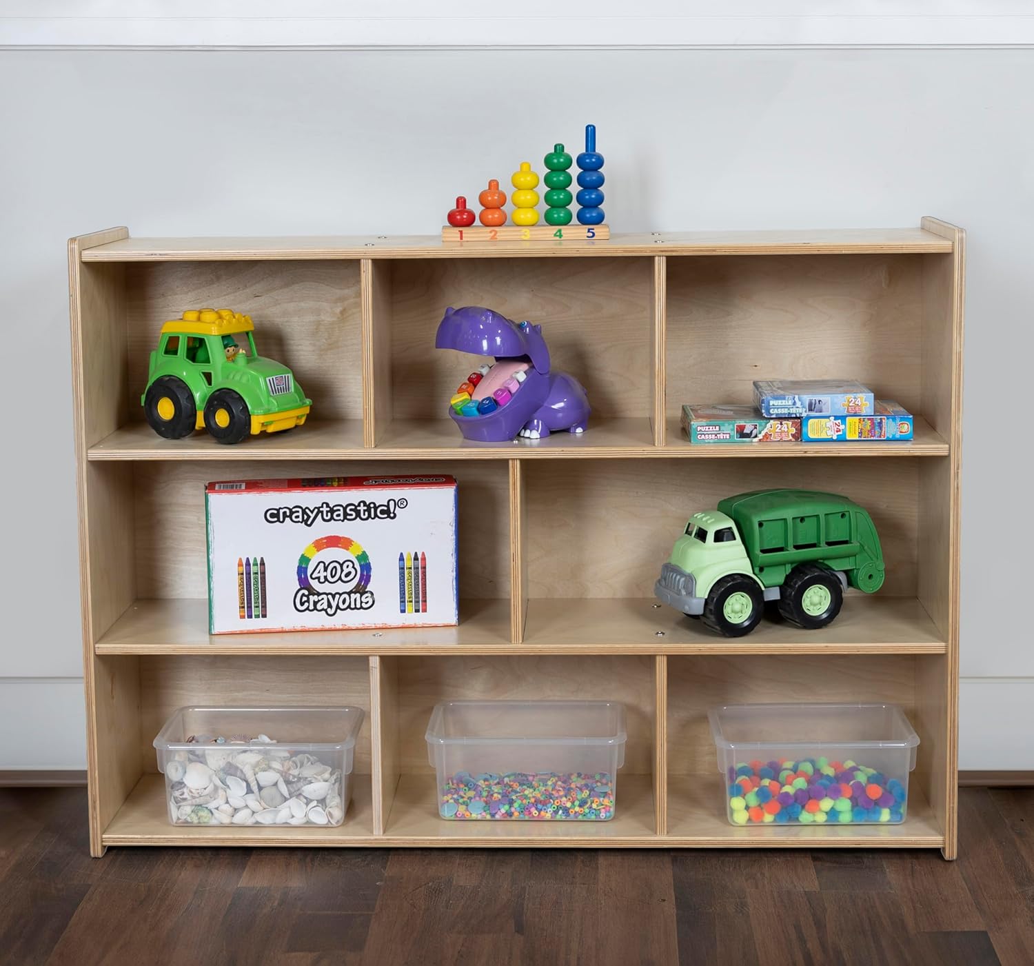 Birch Cubby Storage Organizer Bookcase, 3-Tier Open Shelves, 8-Cube Storage Organizer Display Shelf for Montessori, Kids Room, School, 34" H