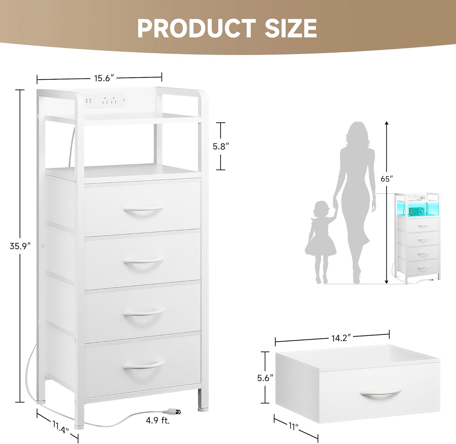 - Night Stand with Drawers: Our nightstand features 4 spacious drawers and a wide, water-resistant tabletop, keeping your essentials neatly stored and easily accessible. Plus, adjustable footpads ensure easy leveling and alignment with your bed or sofa