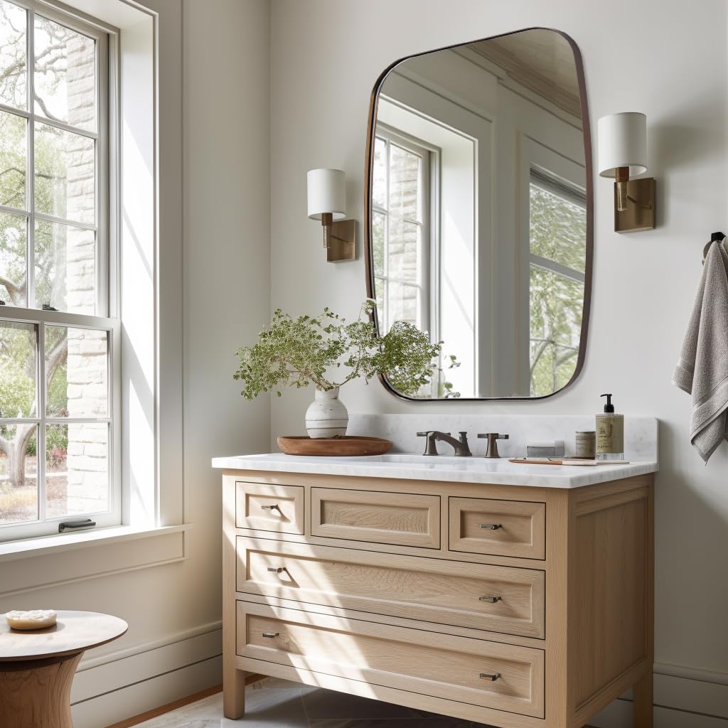 - True Reflection: This vanity bathroom mirror features a 4mm HD glass surface, delivering flawless, distortion-free reflections. Its scratch-resistant and shatterproof design ensures durability, while the easy-to-clean surface maintains a perfect shine with minimal effort