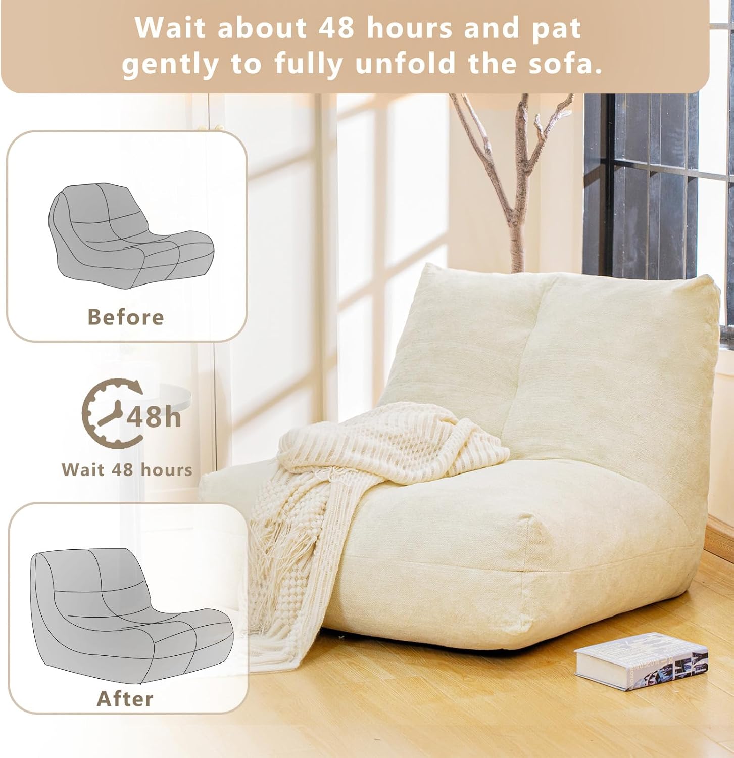 - 【SPACIOUS SINGLE SOFA】 The bean bag sofa's 33.46“ wide, 29.53” high and 13.38” thick, very spacious and comfortable single seat for anyone in the family. In addition, the chair is lightweight and can be moved around.