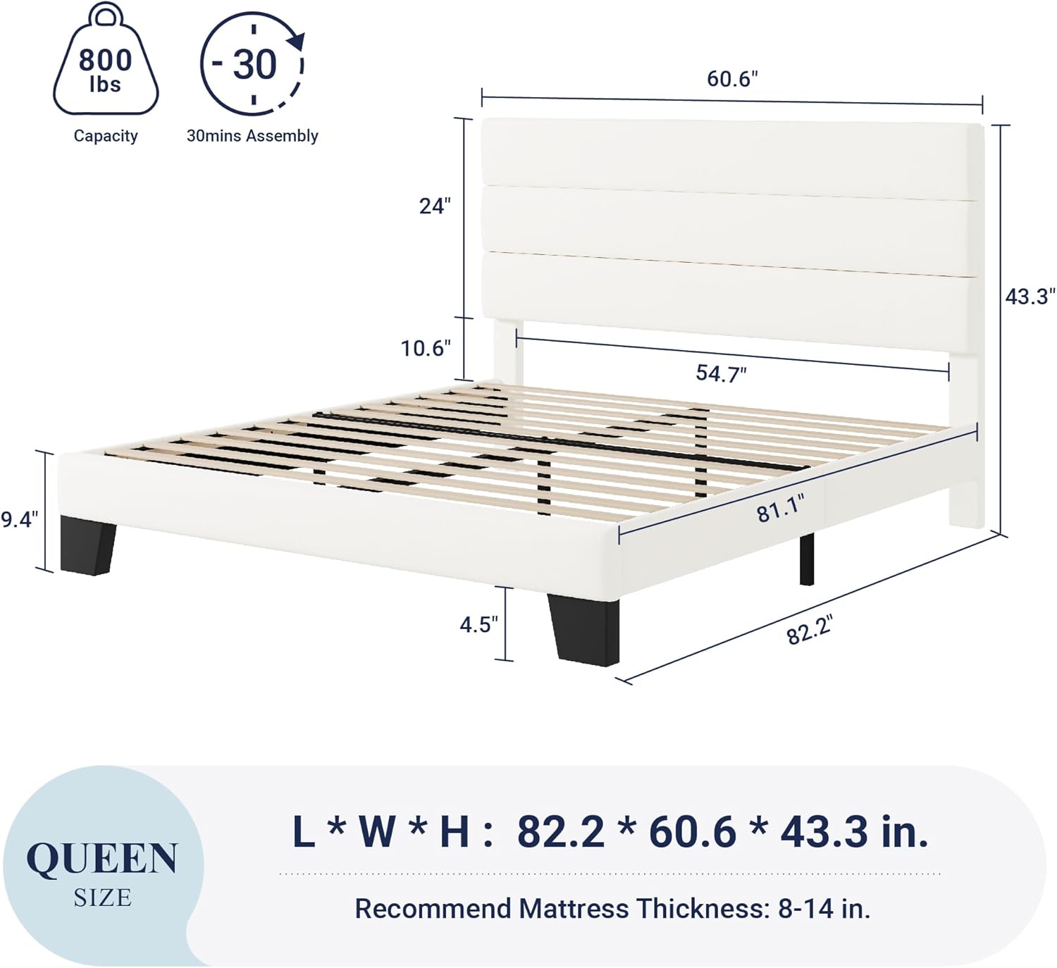 - Quick Assemble: Comes with clear instructions, easy to assemble in about an hour; bed frame fits snugly and holds together tightly; suitable for mattresses 8-15 inches thick
